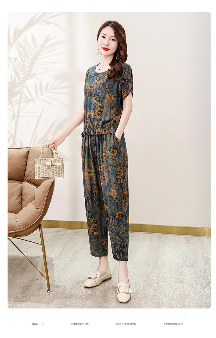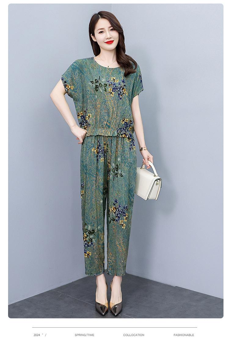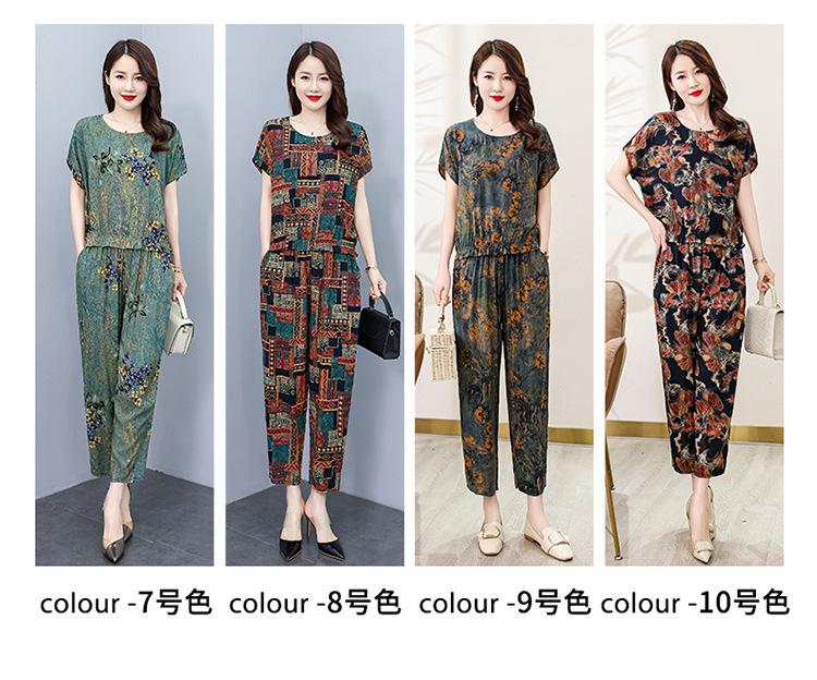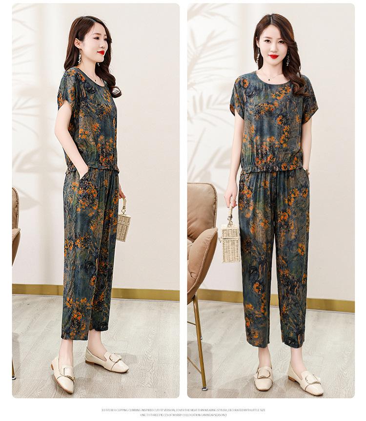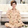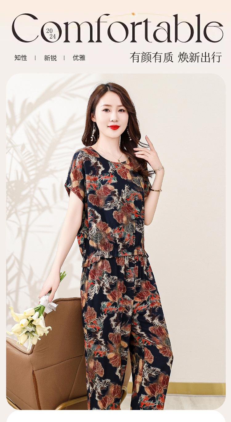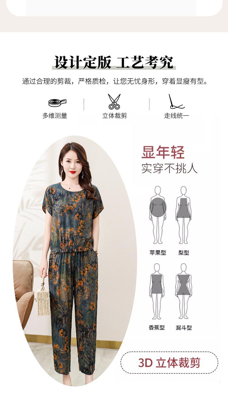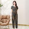 Algodón Seda de Alta Gama Nuevo Pijama de Algodón Seda para Madre de Mediana Edad para Mujer Verano Manga Corta Fino Ropa de Casa Estampado Traje de Dos Piezas