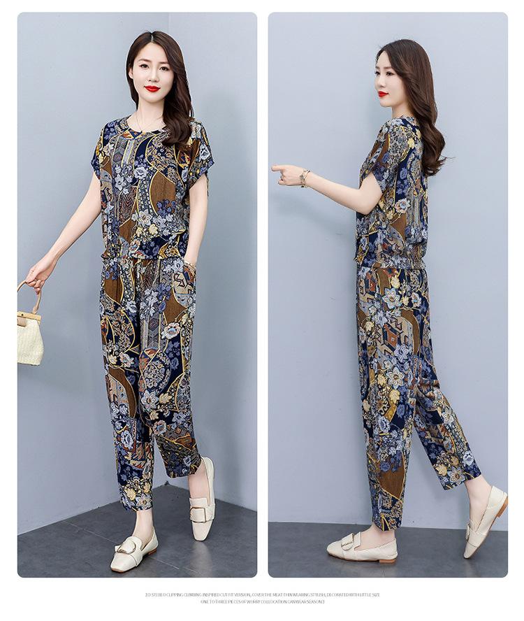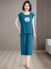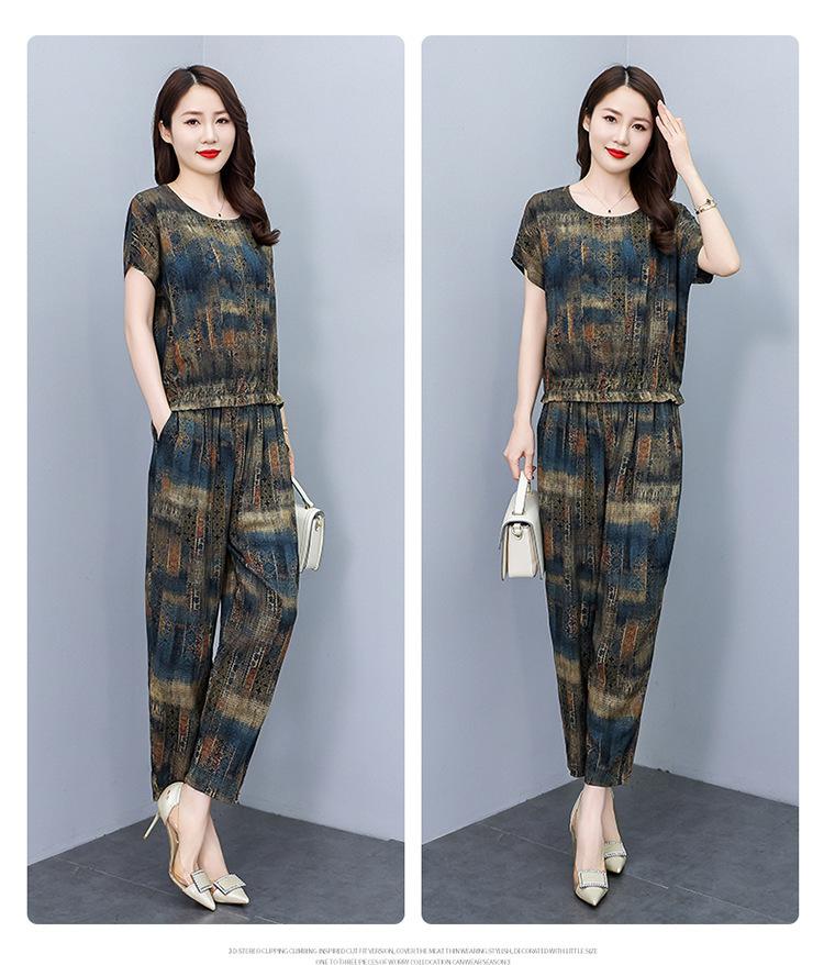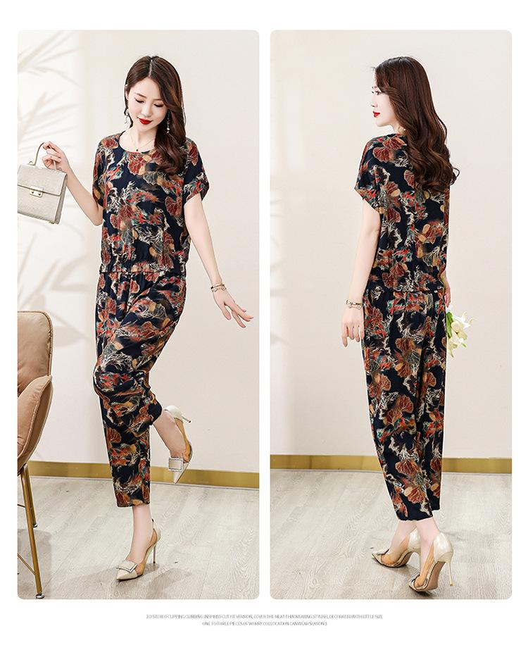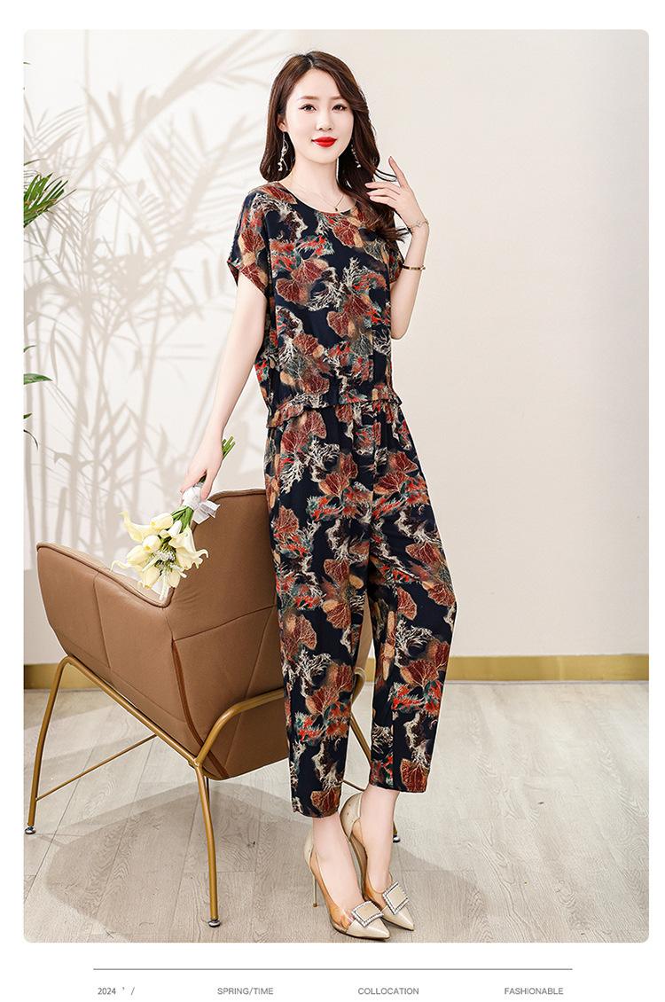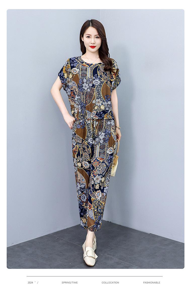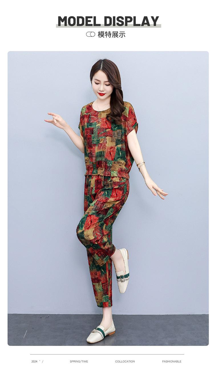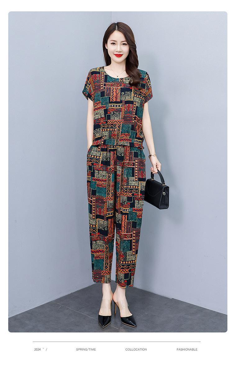 Algodón Seda de Alta Gama Nuevo Pijama de Algodón Seda para Madre de Mediana Edad para Mujer Verano Manga Corta Fino Ropa de Casa Estampado Traje de Dos Piezas