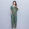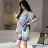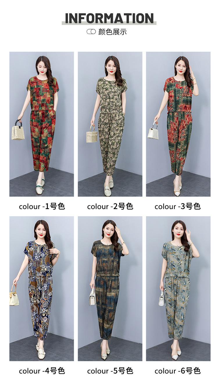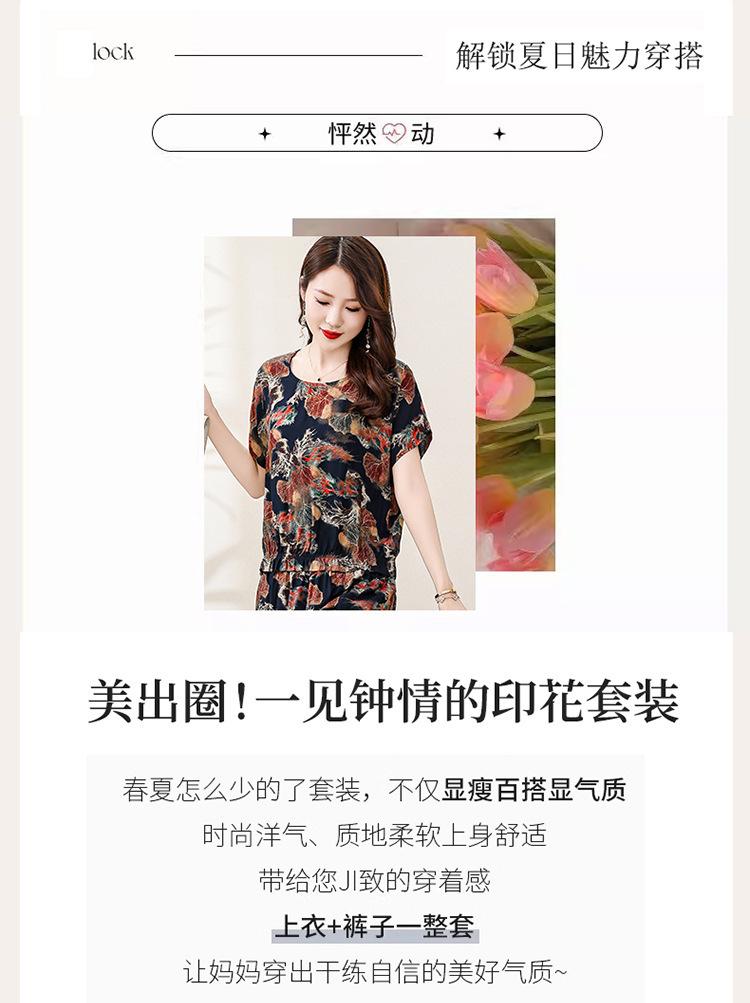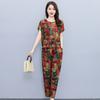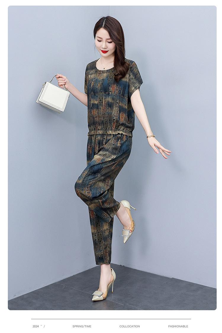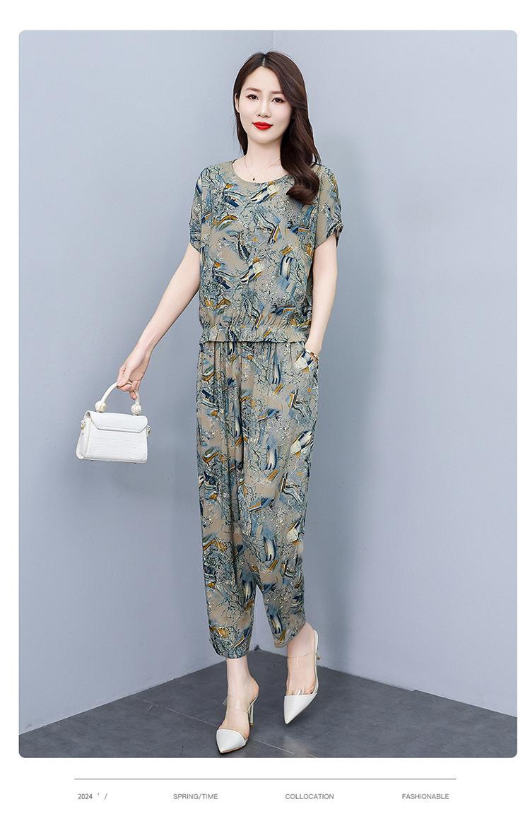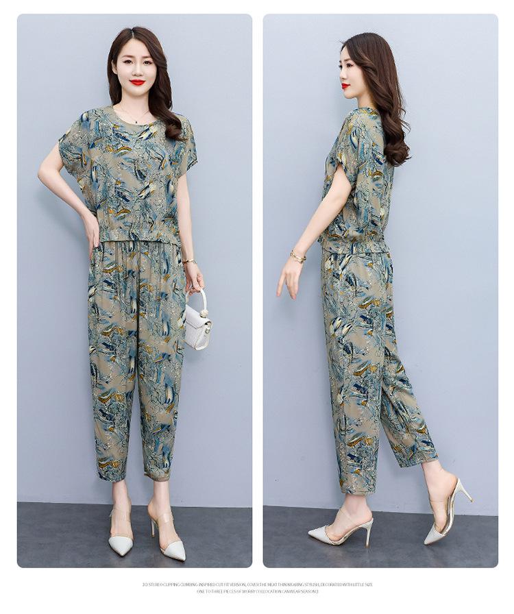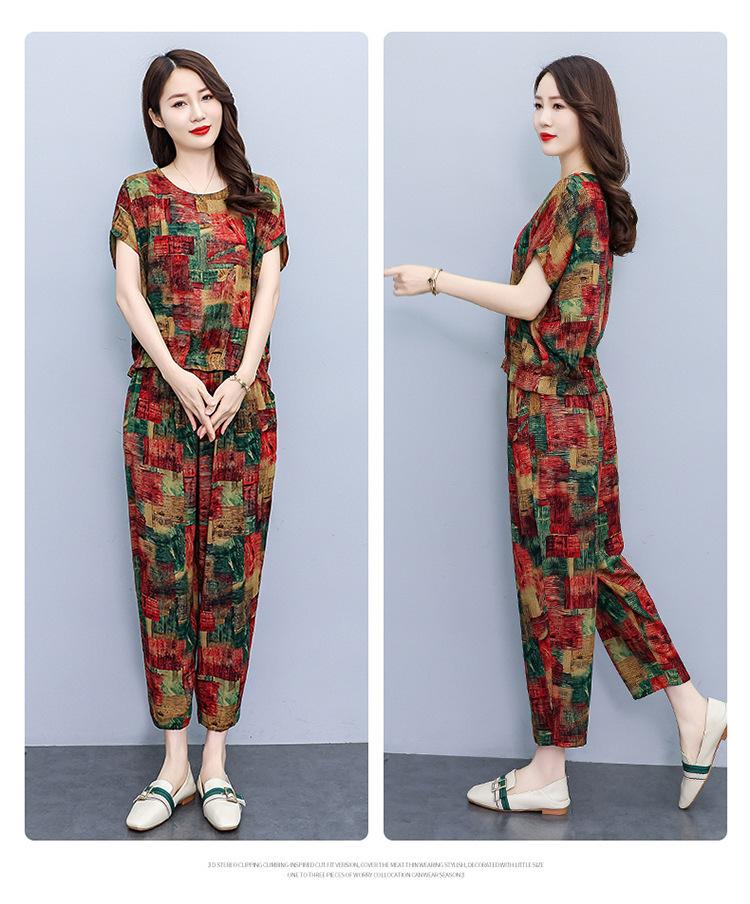 Algodón Seda de Alta Gama Nuevo Pijama de Algodón Seda para Madre de Mediana Edad para Mujer Verano Manga Corta Fino Ropa de Casa Estampado Traje de Dos Piezas