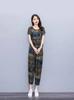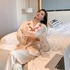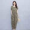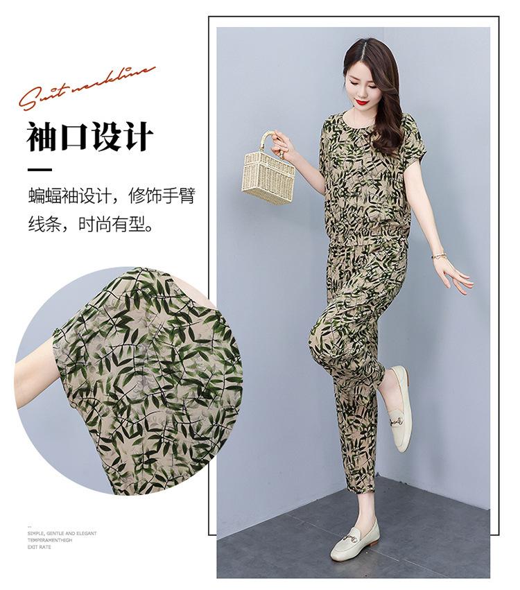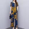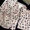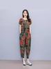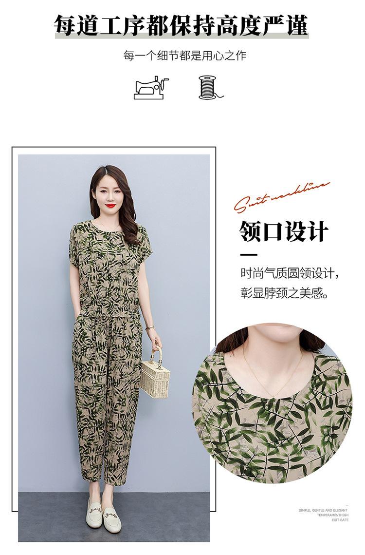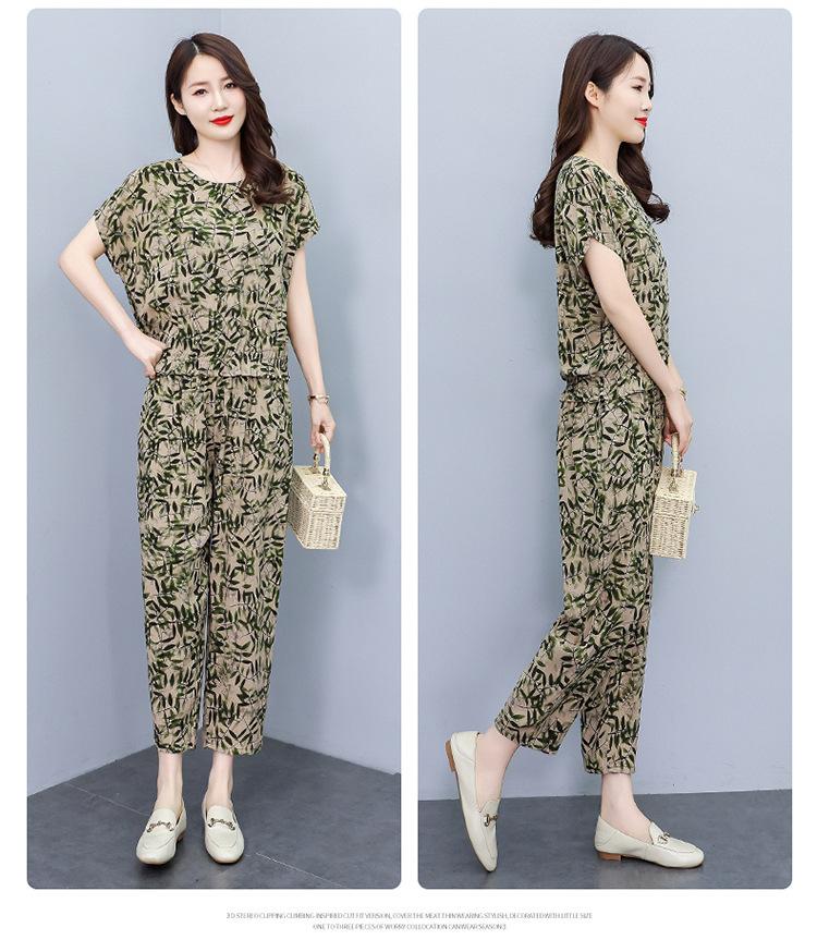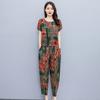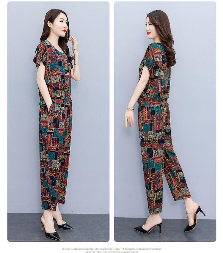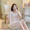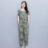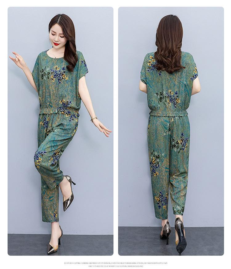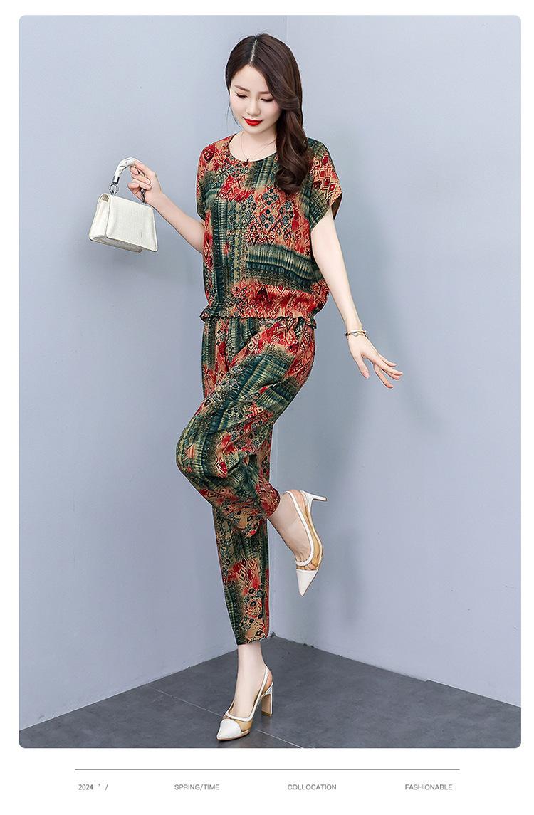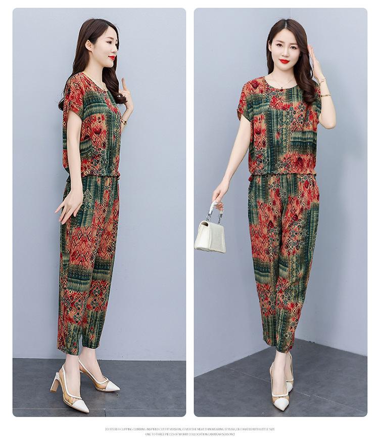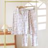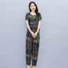 Algodón Seda de Alta Gama Nuevo Pijama de Algodón Seda para Madre de Mediana Edad para Mujer Verano Manga Corta Fino Ropa de Casa Estampado Traje de Dos Piezas