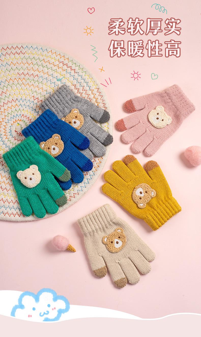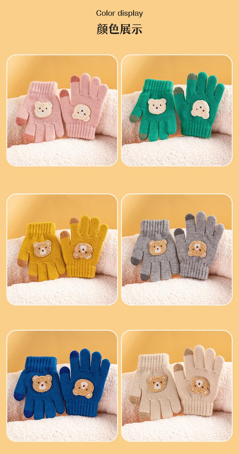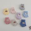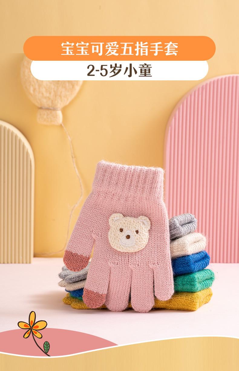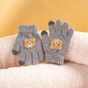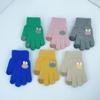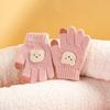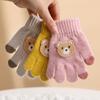 Guantes para niños, otoño e invierno, nuevos guantes de punto de lana de cinco dedos cálidos a prueba de frío con diseño de oso de dibujos animados para niños y niñas