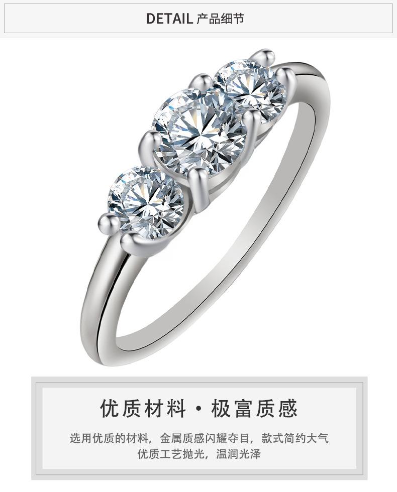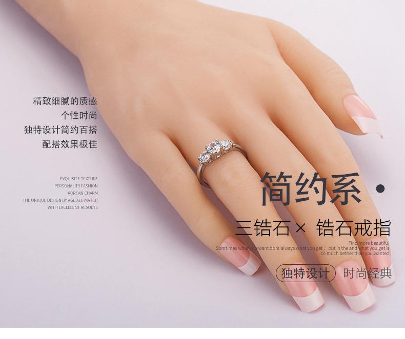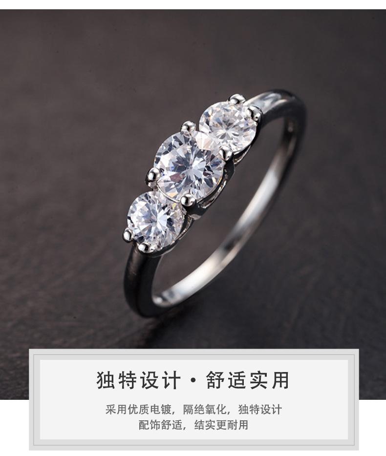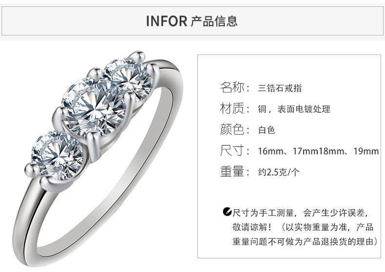 Anillo de diamantes planos de tres circonitas de venta caliente de AliExpress, anillo de circonitas de moda simple