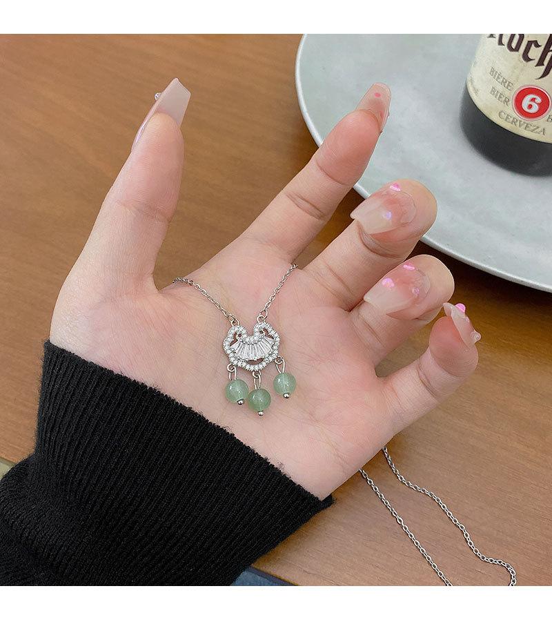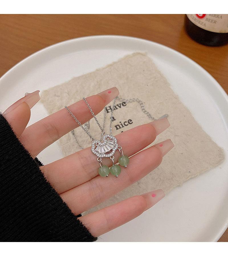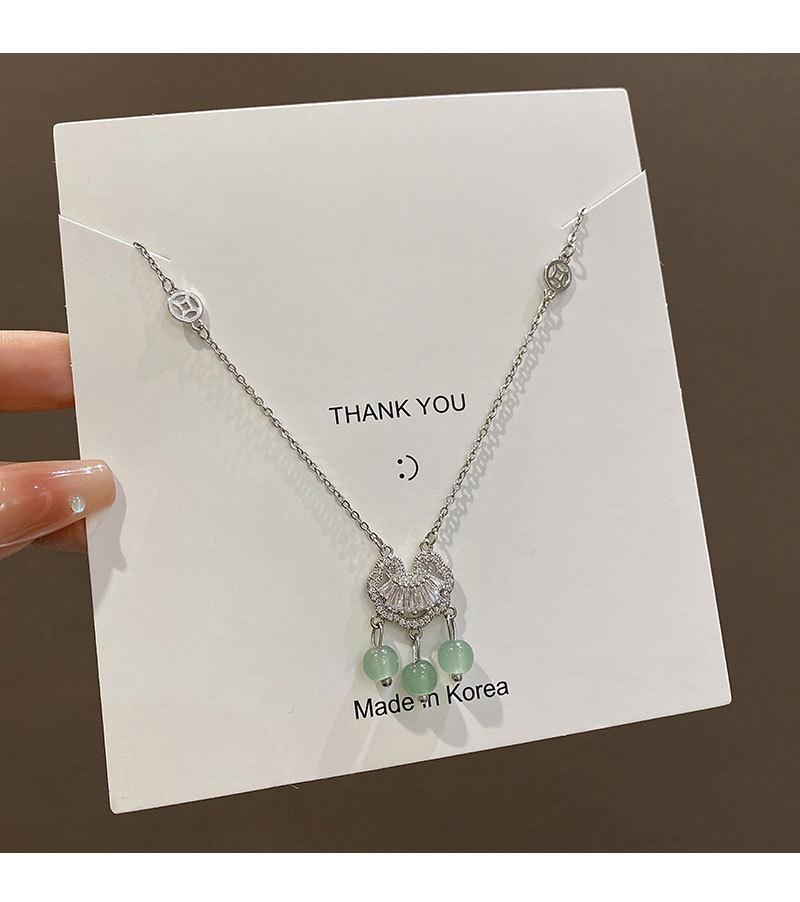 | |  | Collar con cuentas de perlas y corazón en color azul menta para mujer, dulce y moderno, versátil, diseño de nicho, cadena de clavícula, accesorios de estilo ins | | |