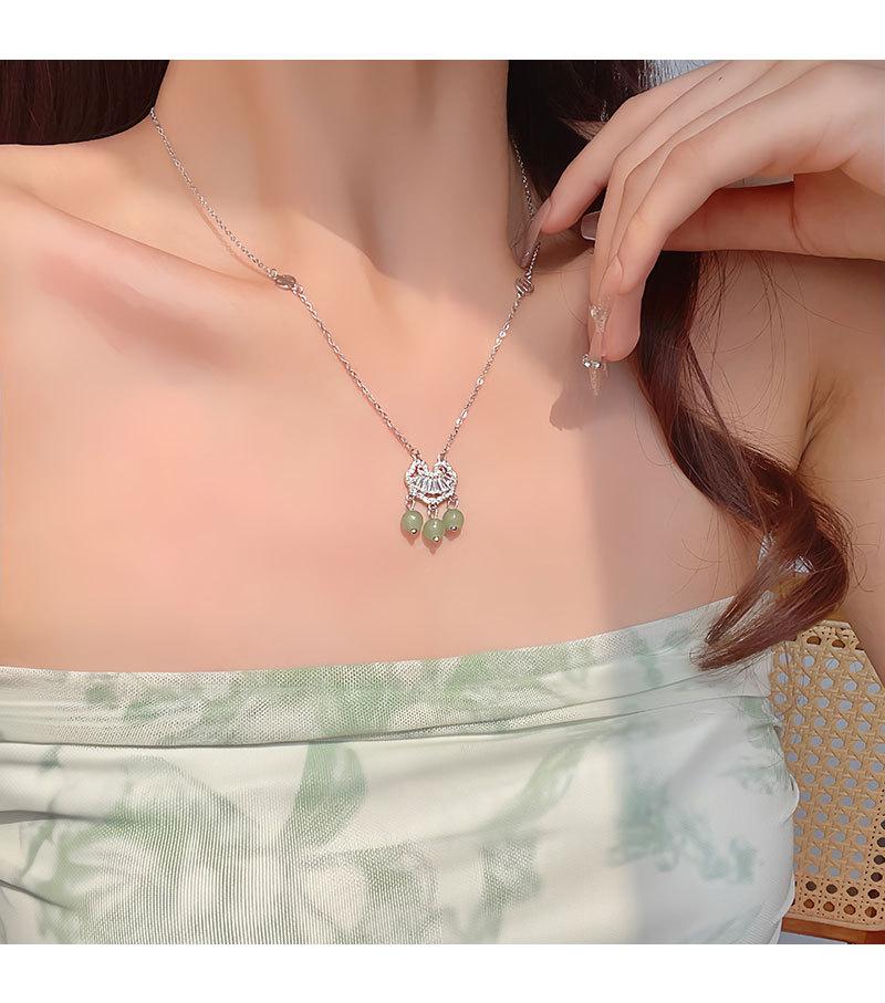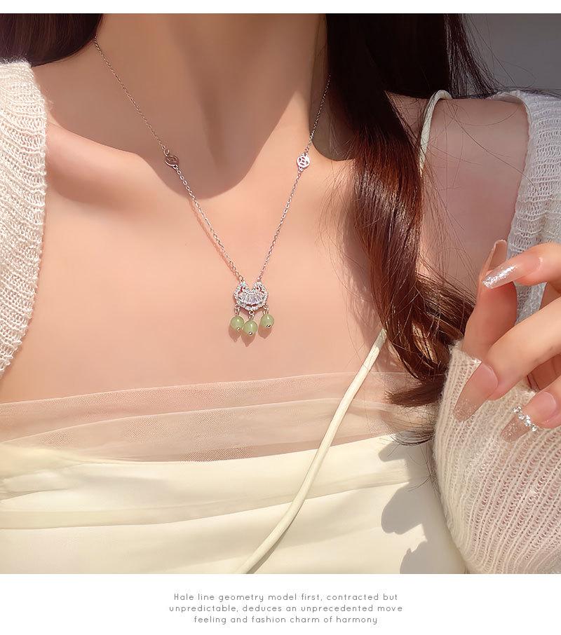 | |  | Nuevo collar con colgante de hebilla de paz de circonita con microincrustaciones de estilo chino para mujer, ligero, de lujo, de nicho, de alta gama, de acero de titanio, accesorios de cadena de clavícula | | |