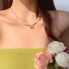 | | | |  | Collar con colgante de lazo de perla de plata rota para mujer, estilo coreano, ligero, de lujo, con diseño de nicho, cadena de clavícula de alta gama, joyería al por mayor | | |