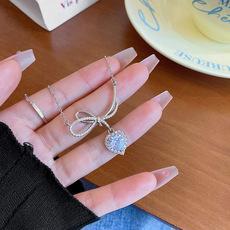 | |  | Collar con colgante de corazón y lazo estilo Ins para mujer, de lujo, ligero, de alta gama, con diamantes de nicho, accesorios de personalidad de moda | | |