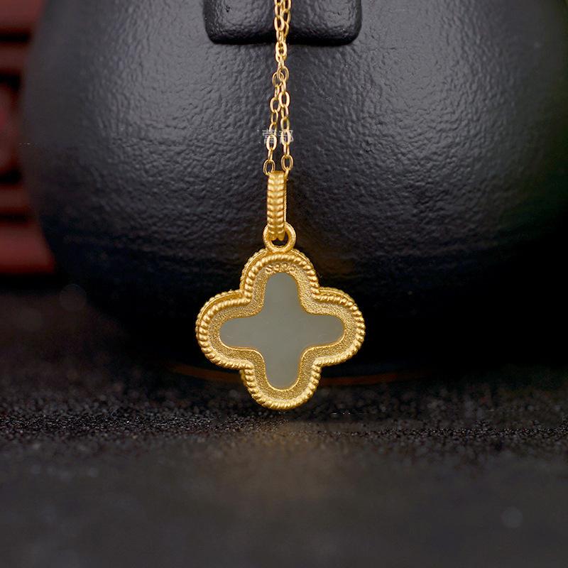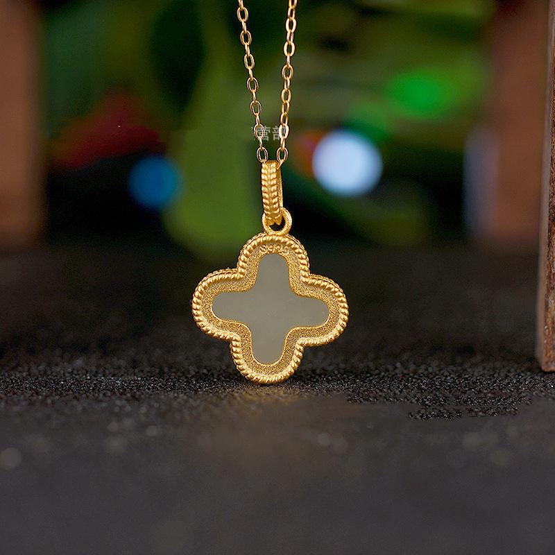 Four-Leaf Clover pendant Pendant + customized titanium gold chain (strong color retention) + national inspection certificate + jewelry gift box