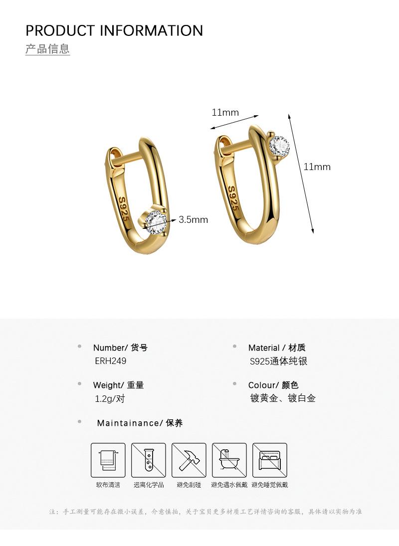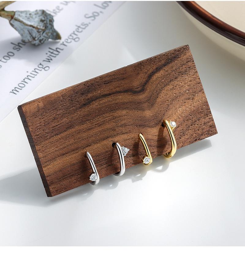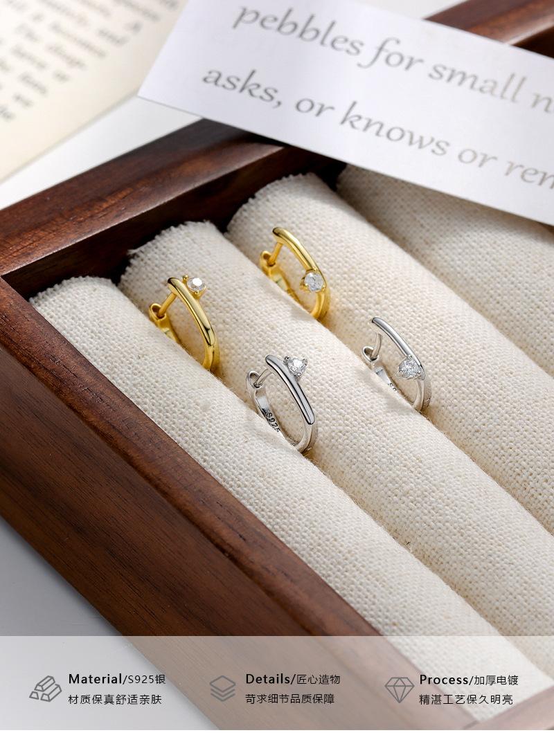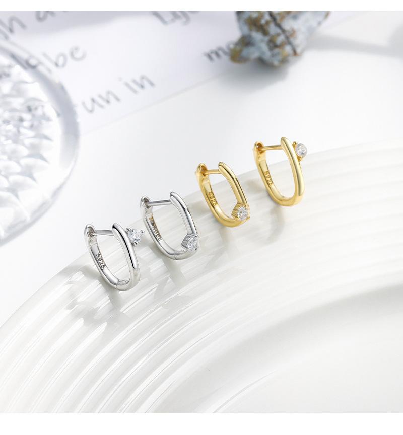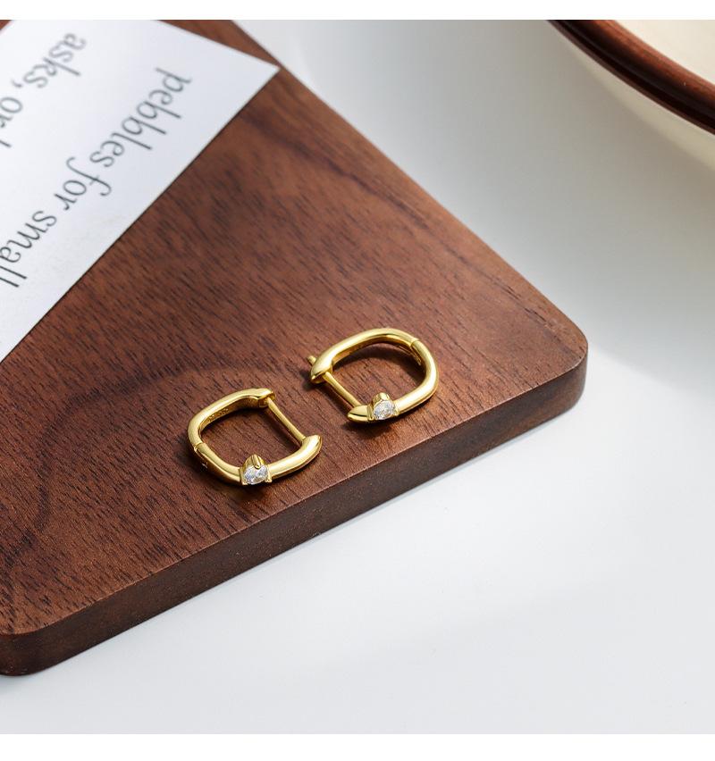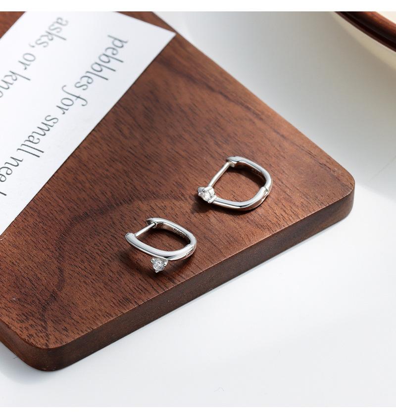 Pendientes de oreja con hebilla geométrica de circonita con incrustaciones de plata esterlina S925, moda femenina, moda transfronteriza simple, comercio exterior europeo y americano, pendientes de perforación de oreja que combinan con todo.