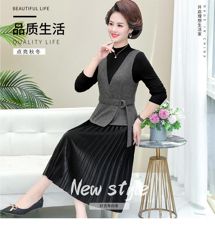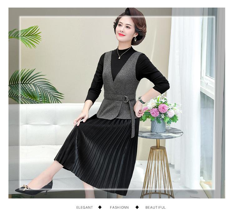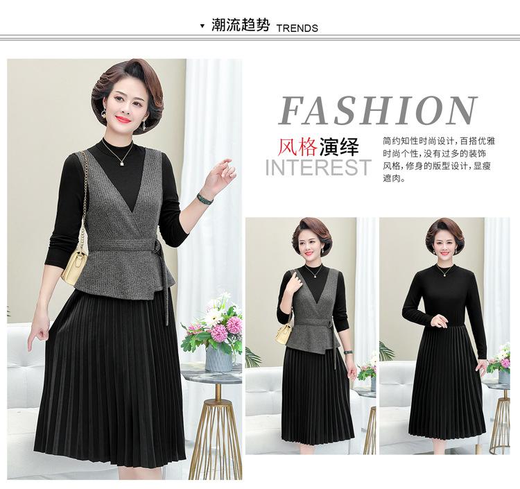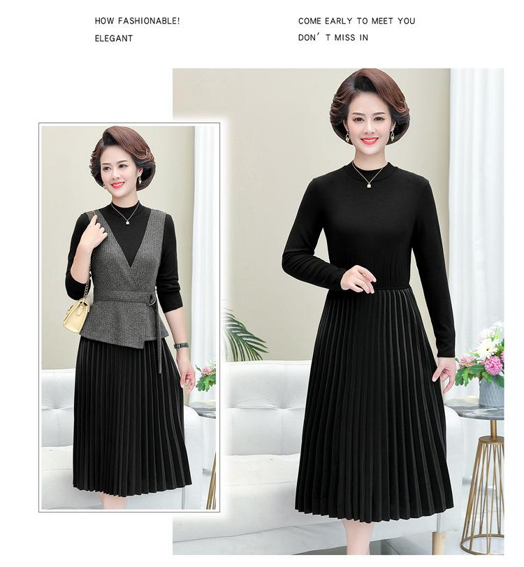 Vestido de Primavera para Madre Conjunto de Dos Piezas de Manga Larga Estilo Occidental Noble 50 años 50 años Mujeres de Mediana Edad Vestido de Primavera y Otoño Temperamento