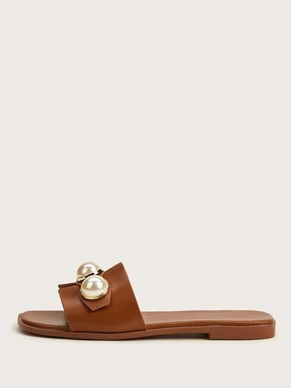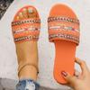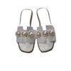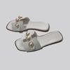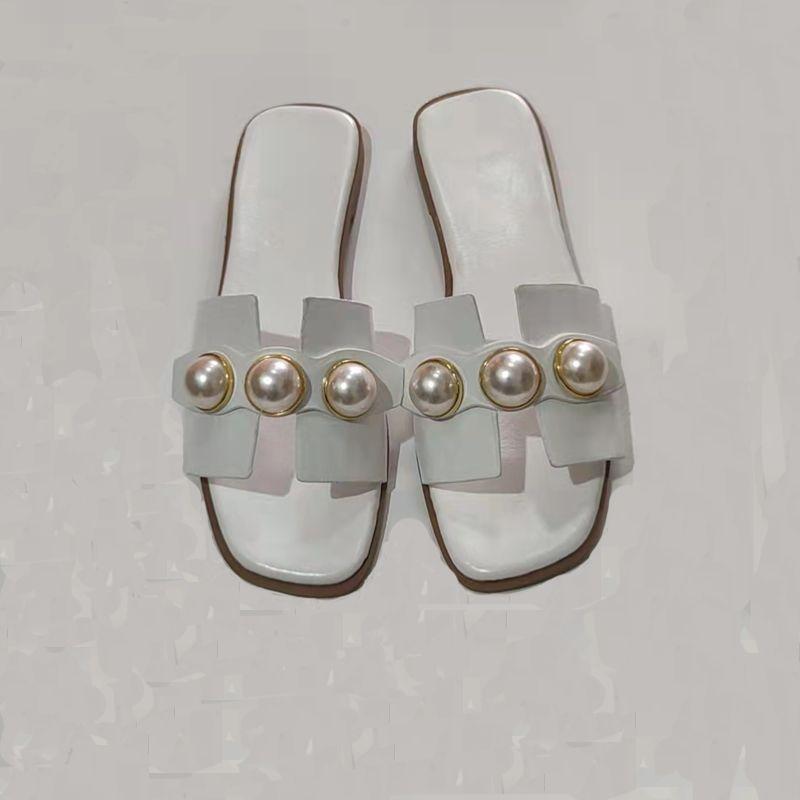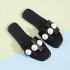 Zapatillas de verano nuevas de comercio exterior de talla grande con perlas planas para mujer, zapatillas de playa con tacón plano