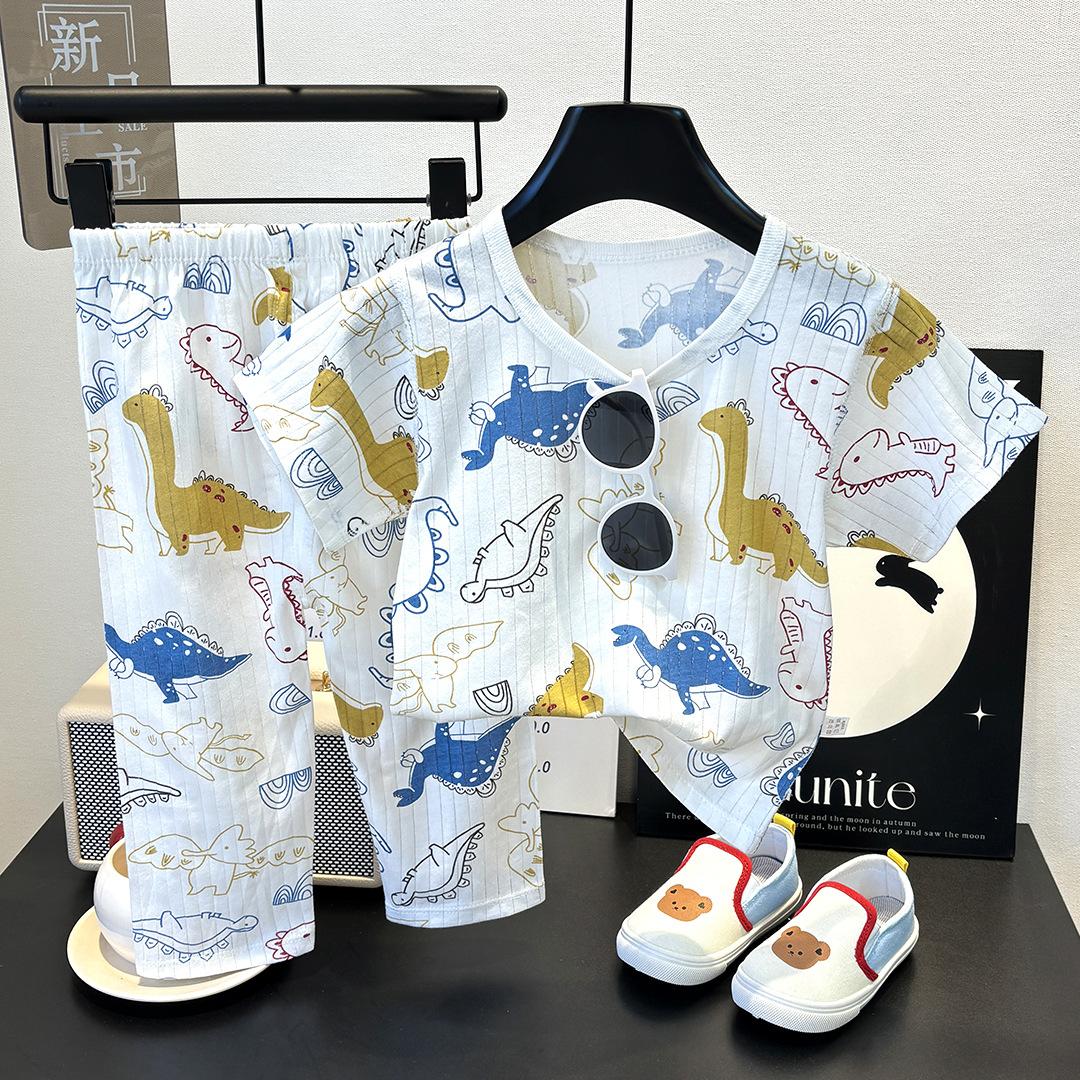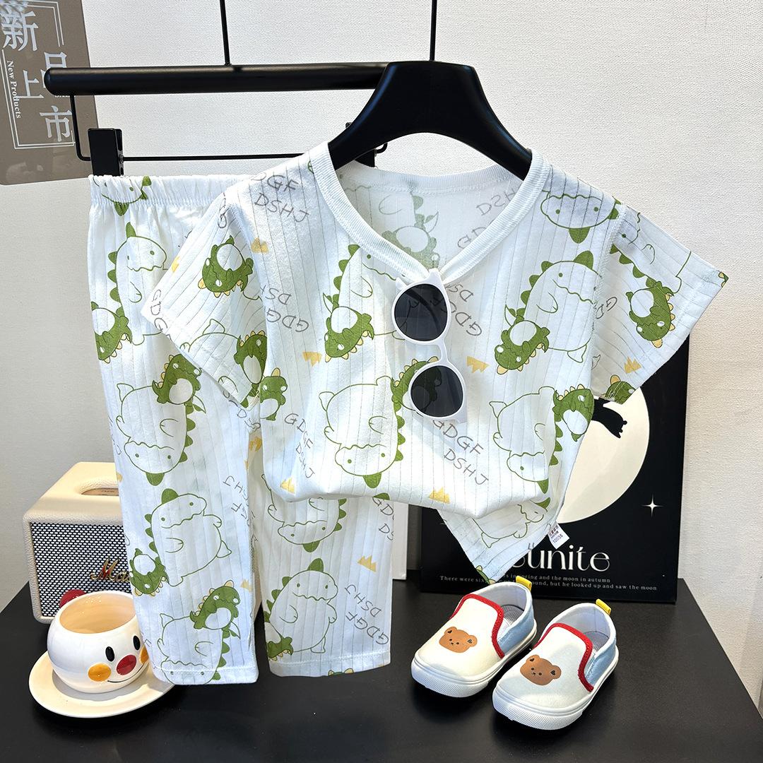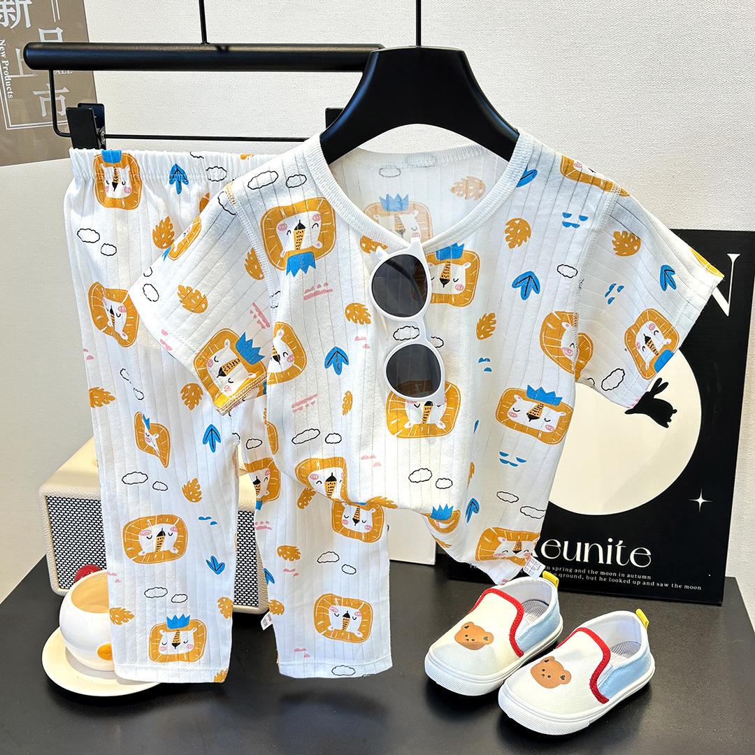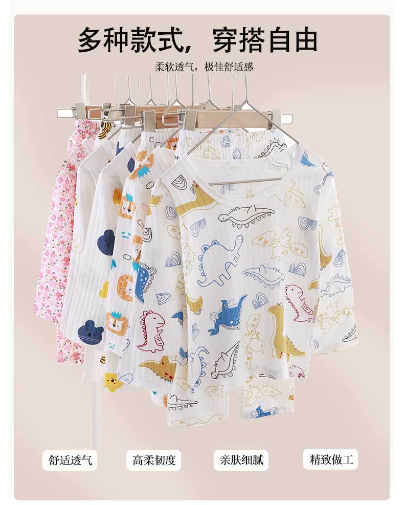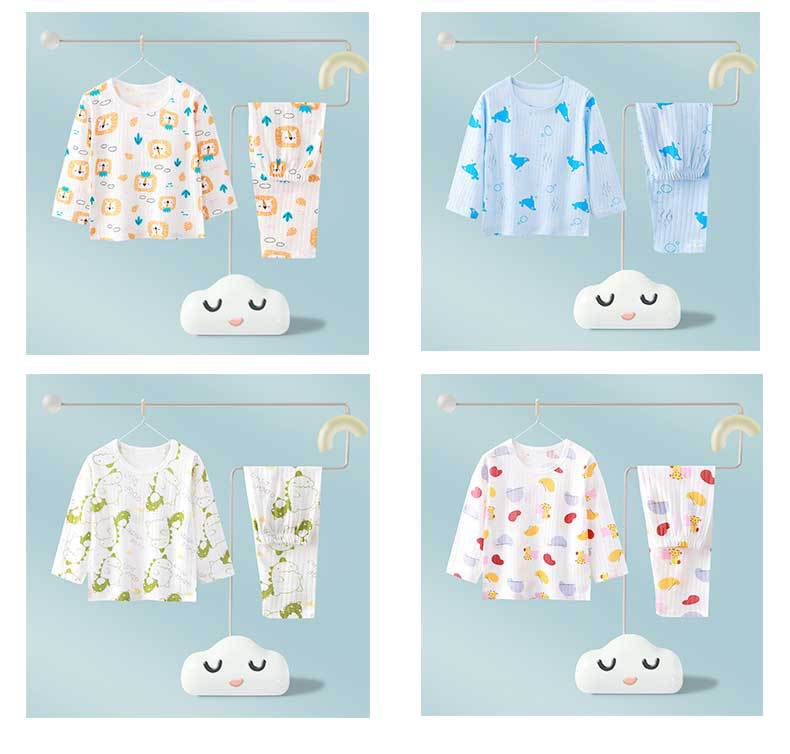Ropa Nueva para Niños Ropa de Casa Pijama para Bebé sin Huesos Traje de Manga Larga Verano Fino Ropa para Niñas con Aire Acondicionado Algodón Puro para Bebé