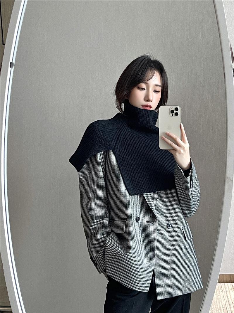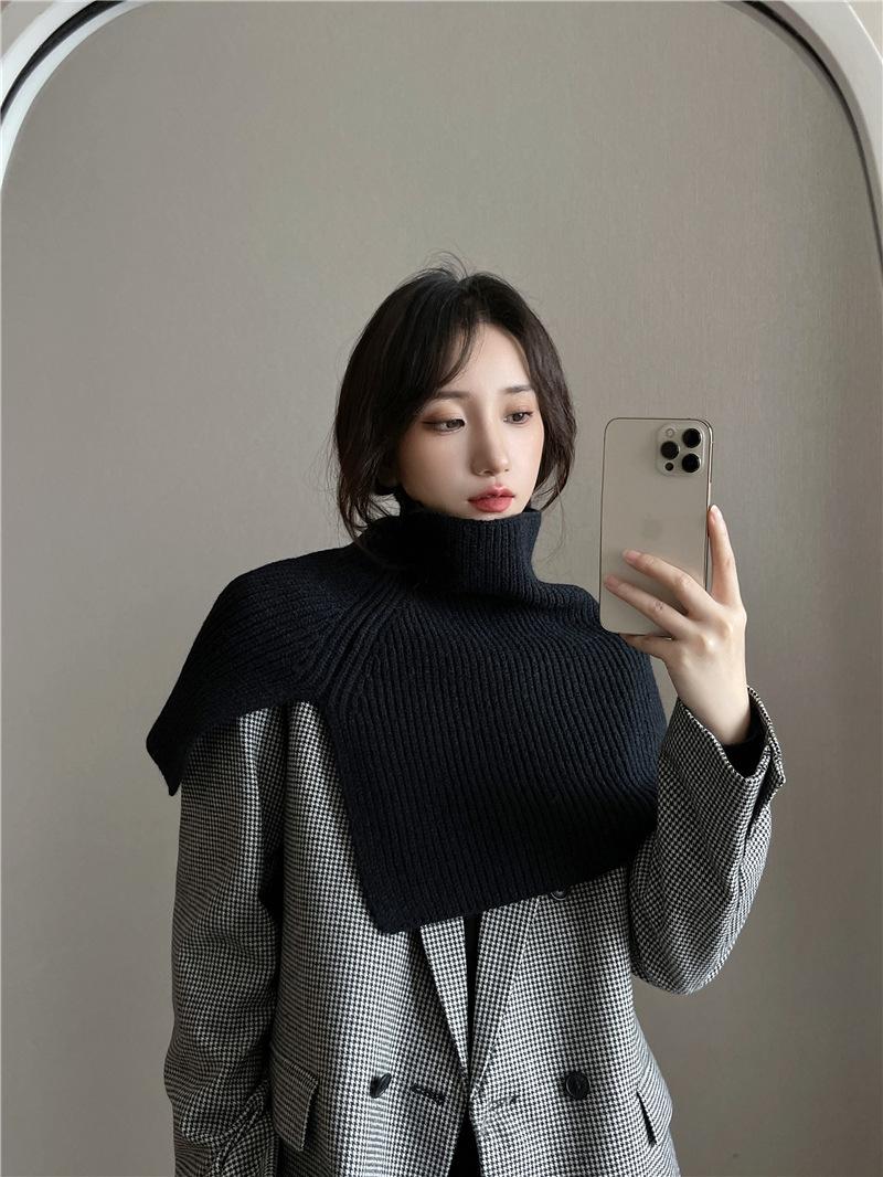 Bufanda de invierno para mujer, nueva moda, jersey exterior, bufanda para mujer, color sólido, estilo coreano, cuello combinable, chal de punto de lana