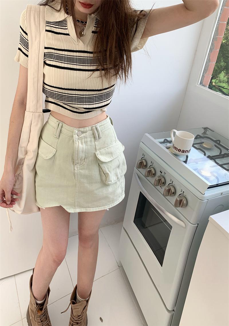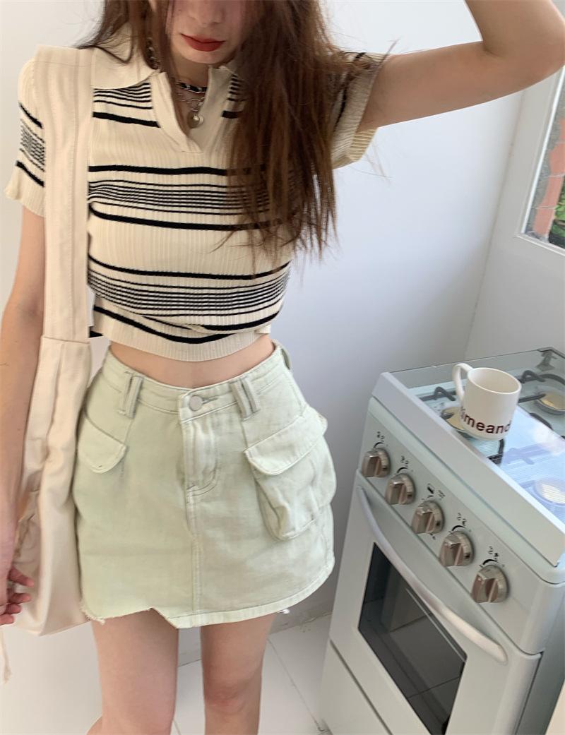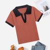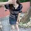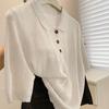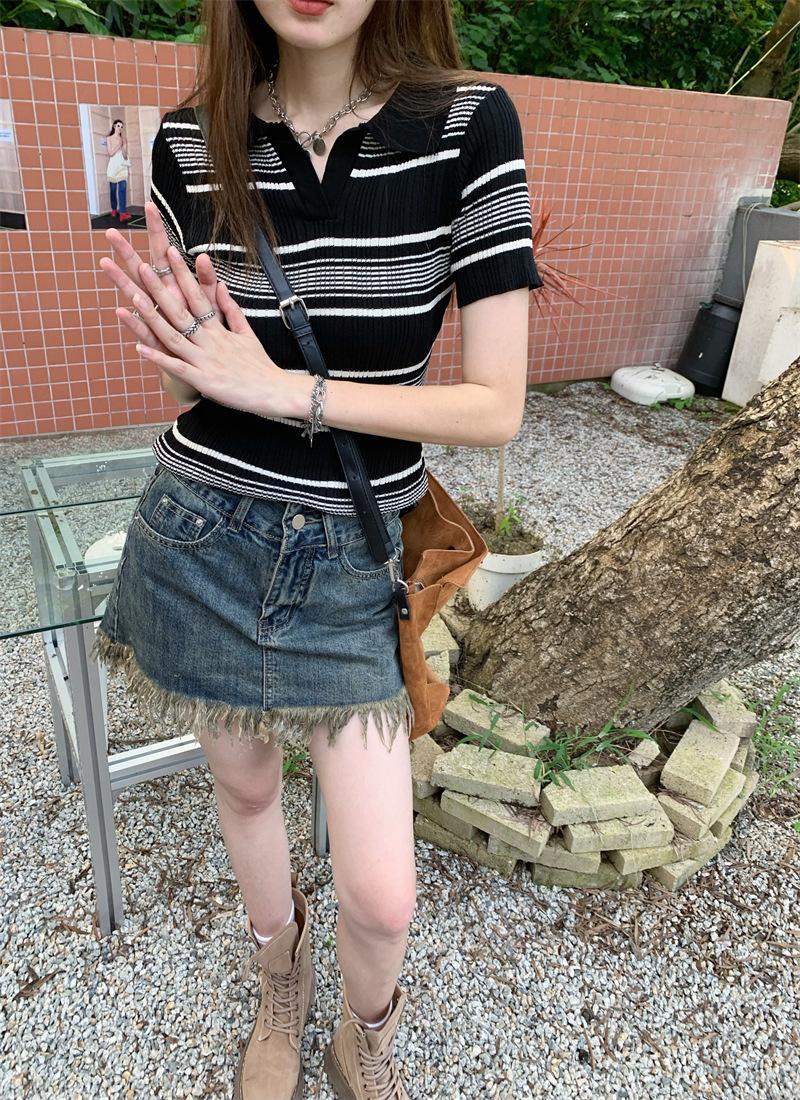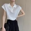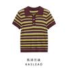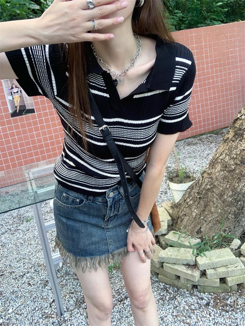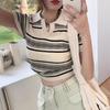 Playera Tejida de Rayas con Cuello Polo para Mujer Verano 2025 Look Adelgazante Top de Manga Corta para Reducir la Edad, Casual y Versátil