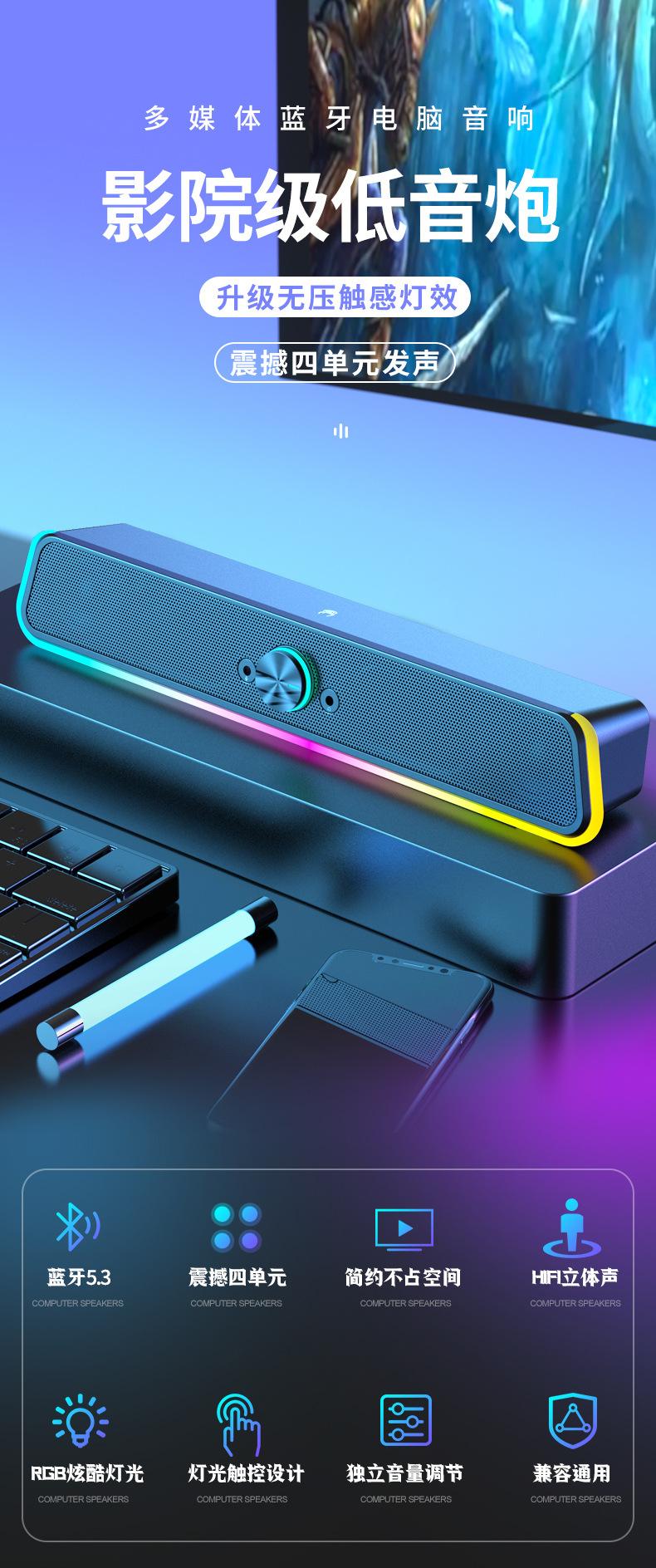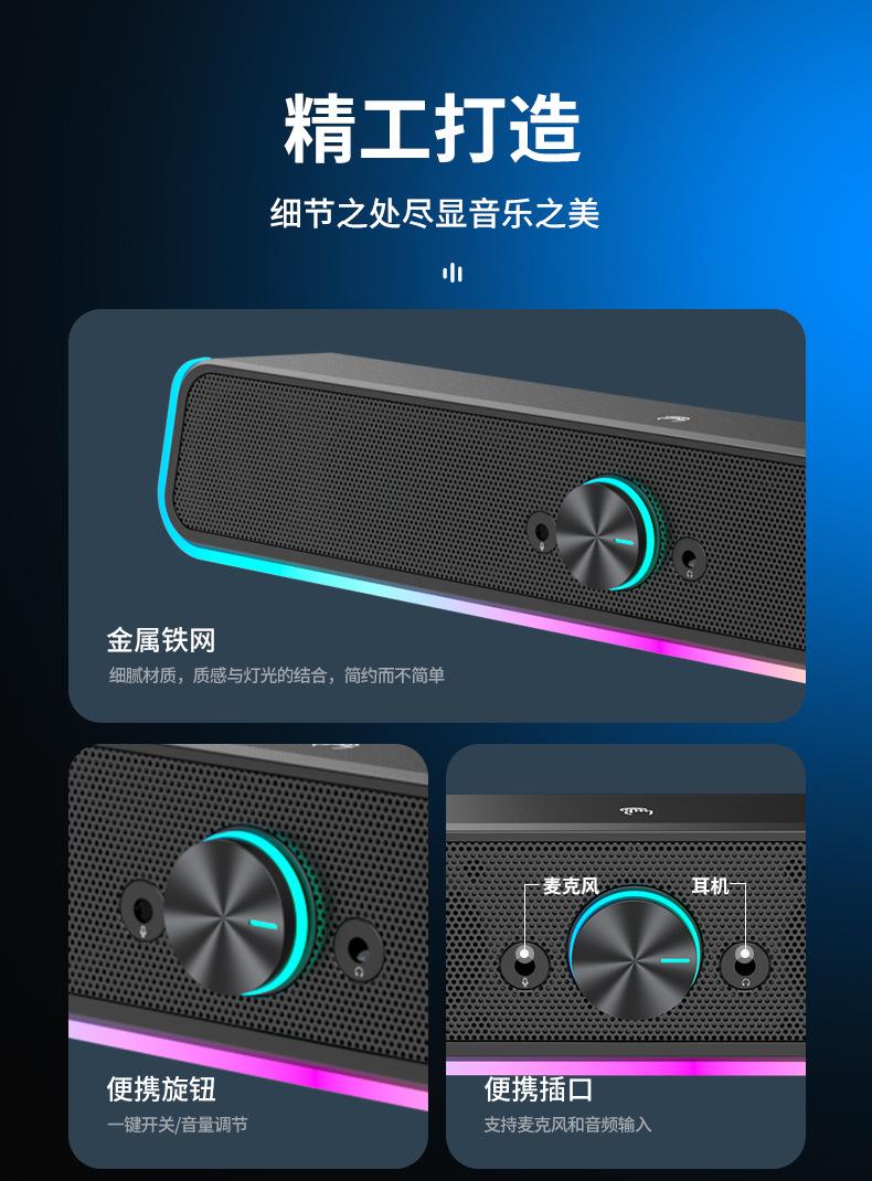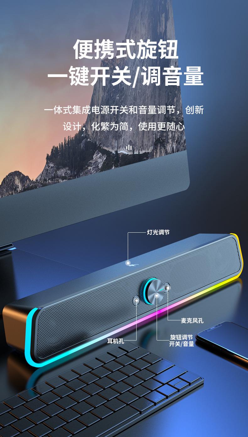Nuevo altavoz de computadora de escritorio con cable largo subwoofer luminoso audífono juego estéreo audio de computadora transfronterizo