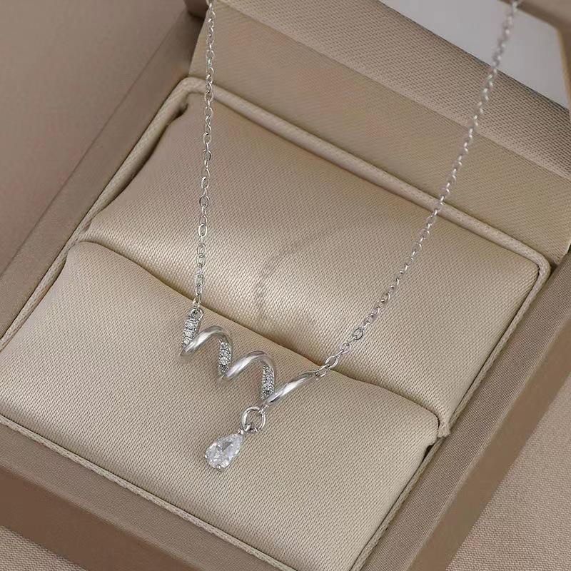 Collar con colgante de espiral de estilo transfronterizo para mujer, nuevo diseño de nicho de lujo ligero, cadena de clavícula con sentido, joyería de una sola pieza.