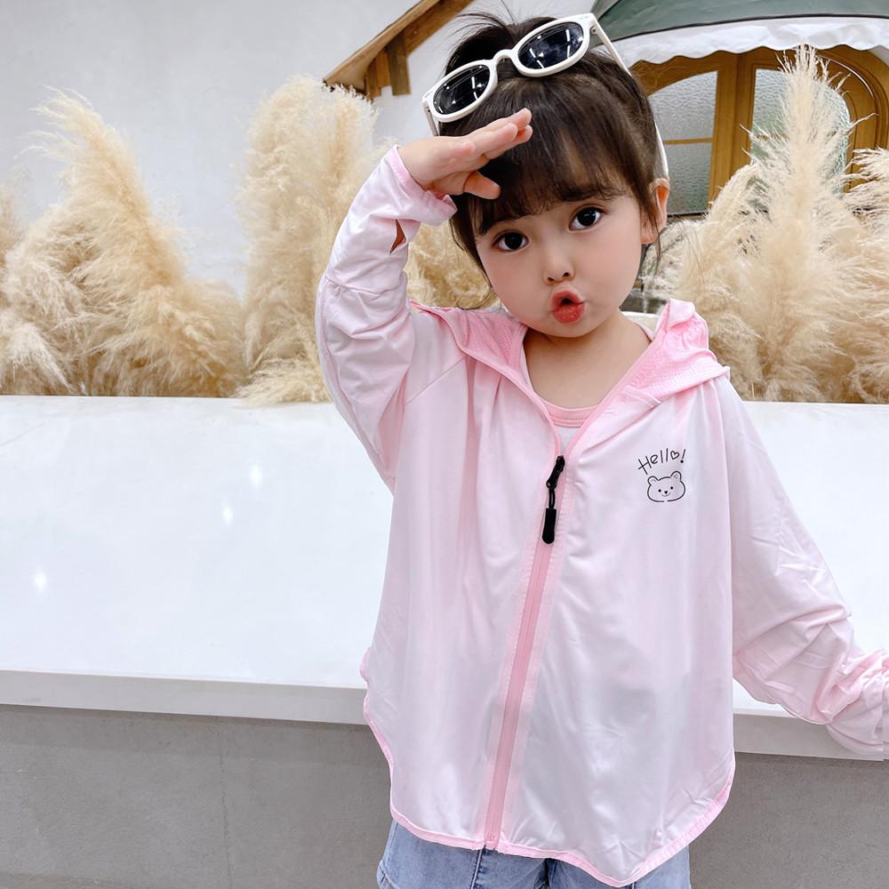 Ropa de protección solar de seda helada de oso para niños de verano, ropa de protección solar para niñas de estilo coreano, abrigo holgado y transpirable con protección UV para padres e hijos.