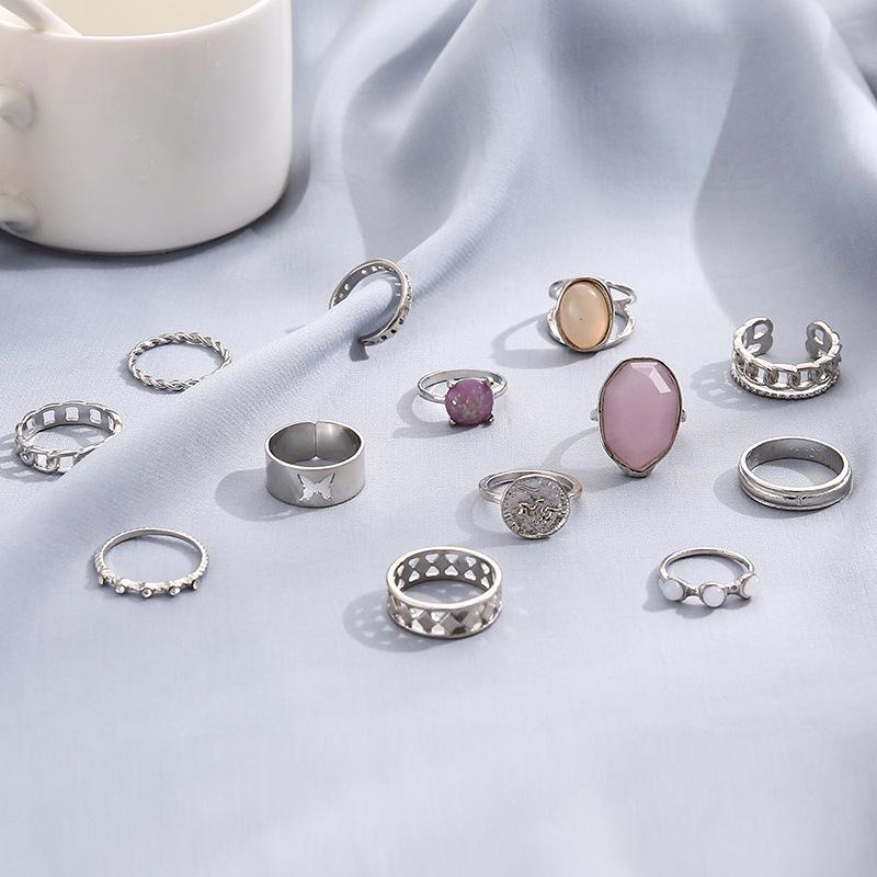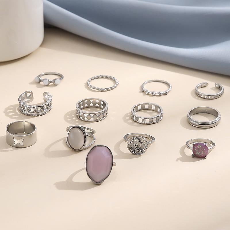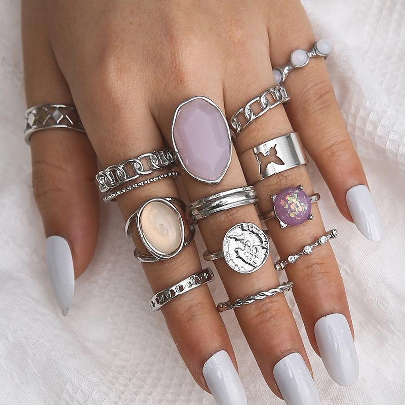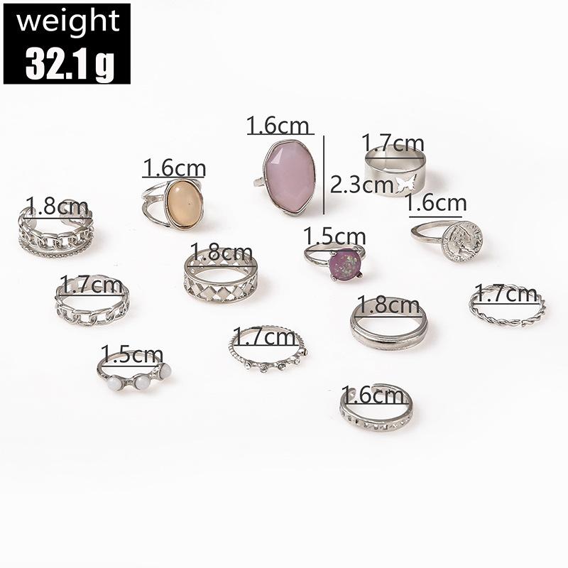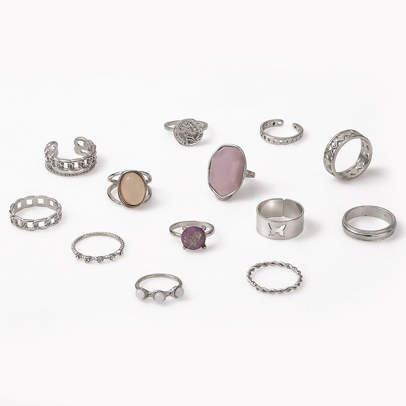 Anillo abierto con cadena de circonita púrpura de temperamento noble ovalado geométrico de diamante retro transfronterizo de Europa y Estados Unidos al por mayor