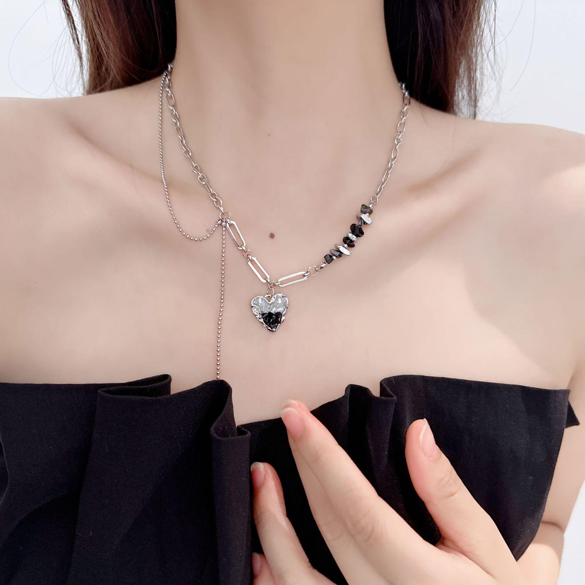 Collar de circonita con forma de corazón dulce y fresco para mujer 2023, nueva y popular cadena de clavícula, diseño de nicho de lujo ligero, cadena de suéter de alta calidad
