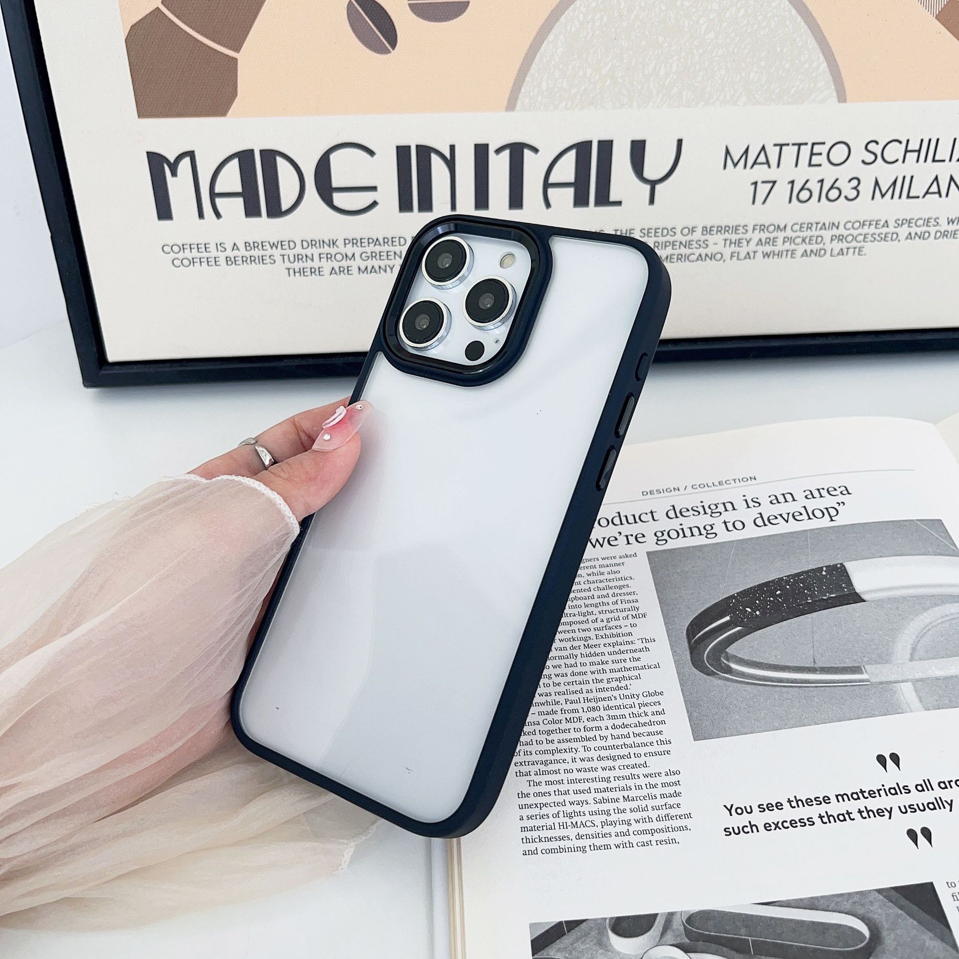 Funda de acrílico de alta permeabilidad para Apple 16promax, funda protectora de color sólido para iPhone 15, 14 pulgadas, sencilla para hombres y mujeres.