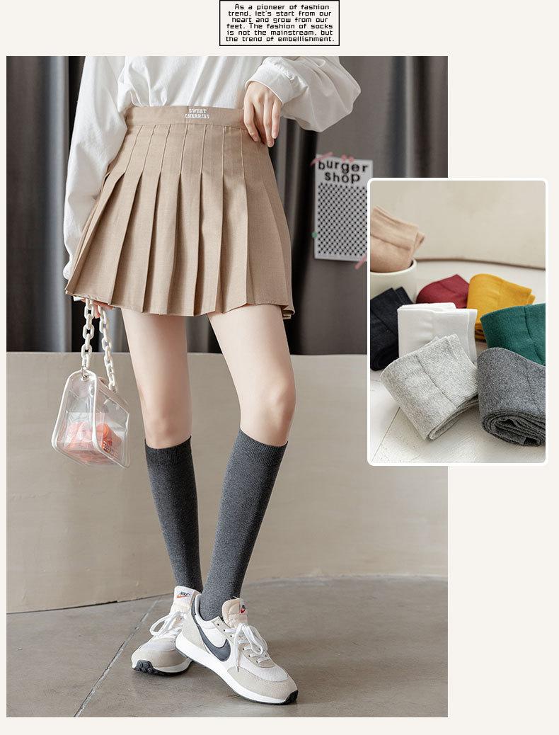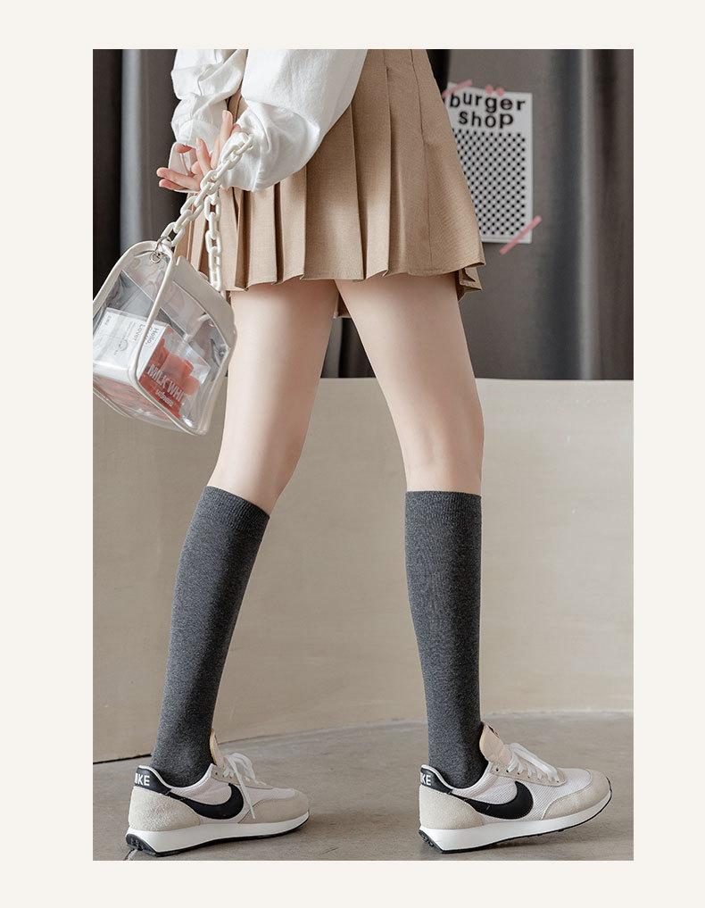 Calcetines de algodón de color liso para mujer, calcetines básicos de color japonés hasta la pantorrilla, calcetines negros hasta la rodilla para estudiantes, calcetines de pila JK