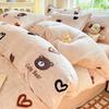 Conjunto de cuatro piezas de terciopelo de leche espesado, edredón individual de doble cara de terciopelo coral de invierno para dormitorio, conjunto de tres piezas con forro polar de franela