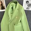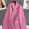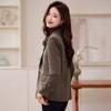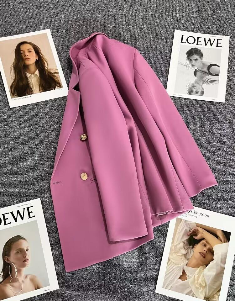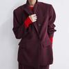 Chaqueta de traje rojo vino con hebilla de metal para mujer, primavera y otoño 2024, nuevo traje coreano de alta gama, traje popular para mujer.