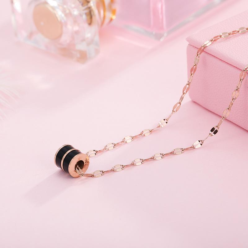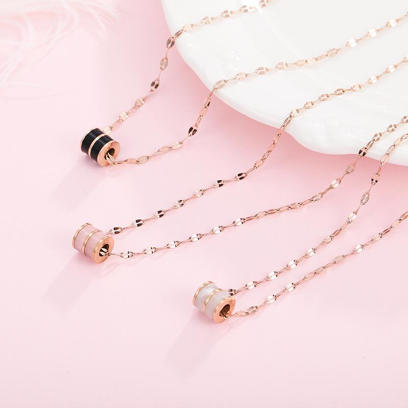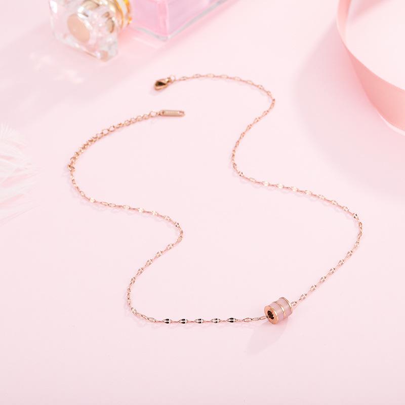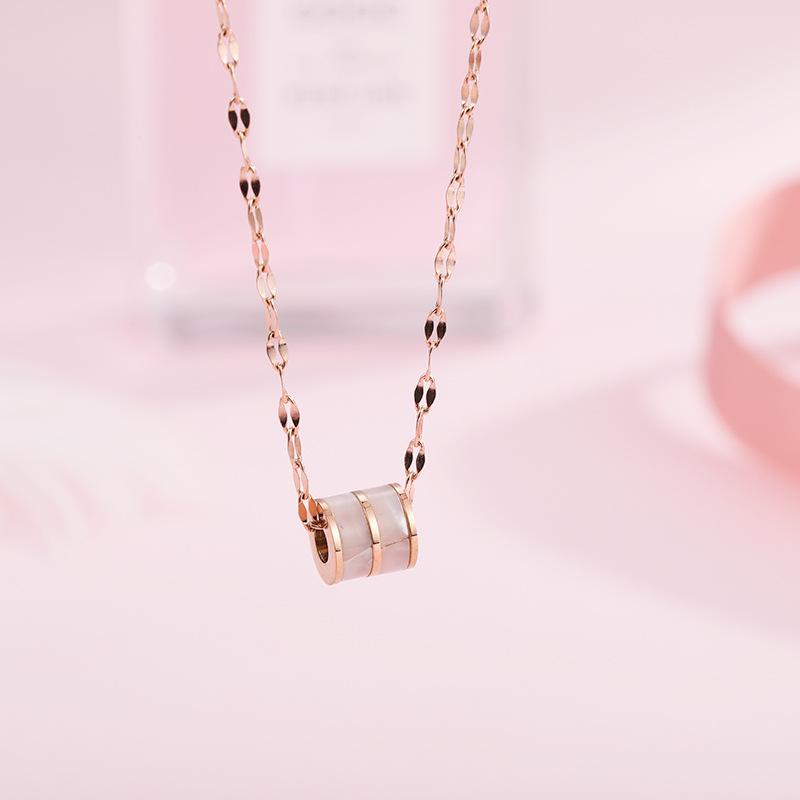 Anillo de moda simple de cabello liso de fábrica, colgante circular de concha, acero de titanio, oro rosa, nuevo collar de cadena de labios al por mayor
