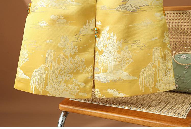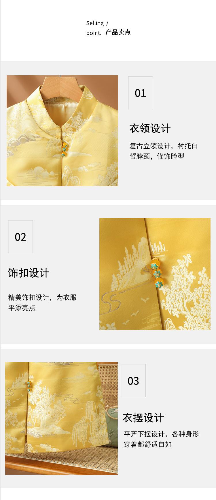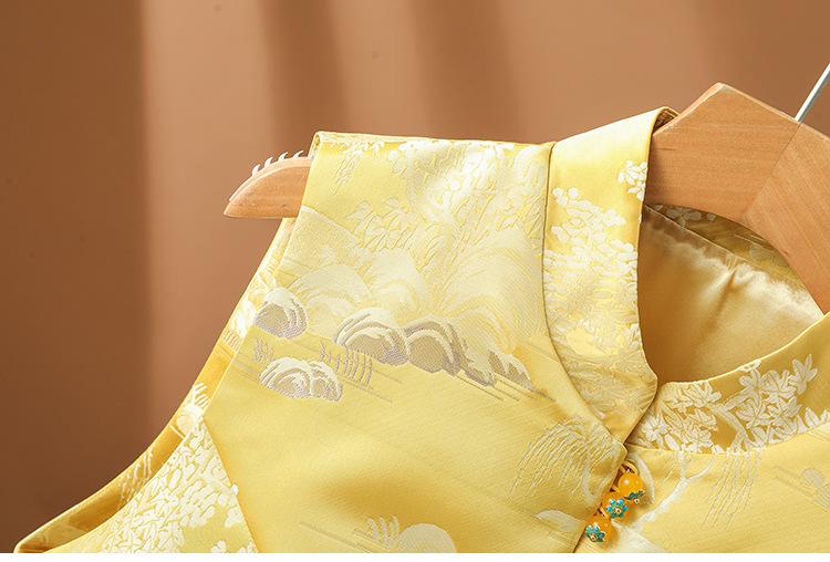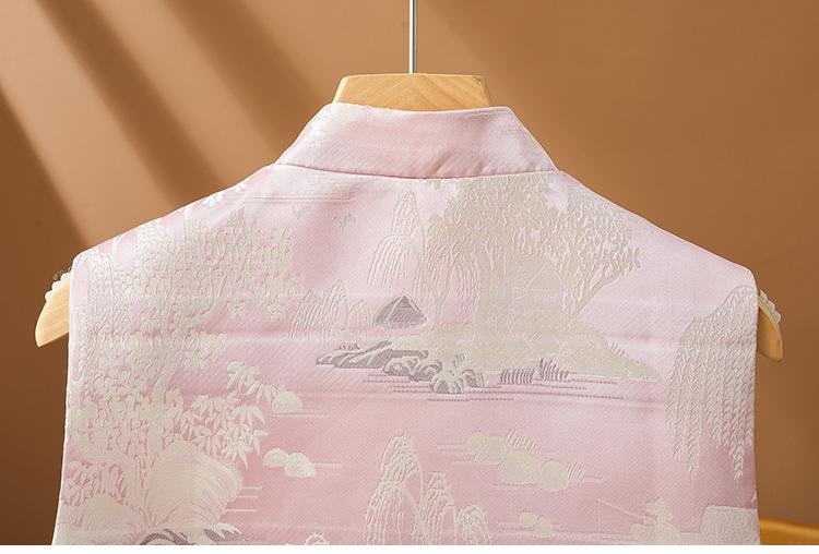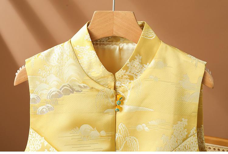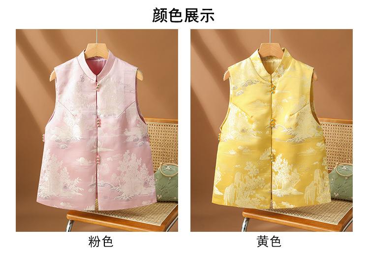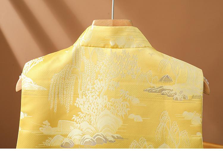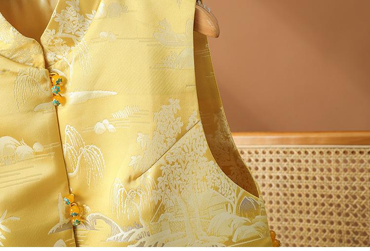 Chaleco de estilo chino con hebilla de perla y jacquard paisajístico para mujer, otoño e invierno 2023, nuevo chaleco de estilo nacional antiedad.