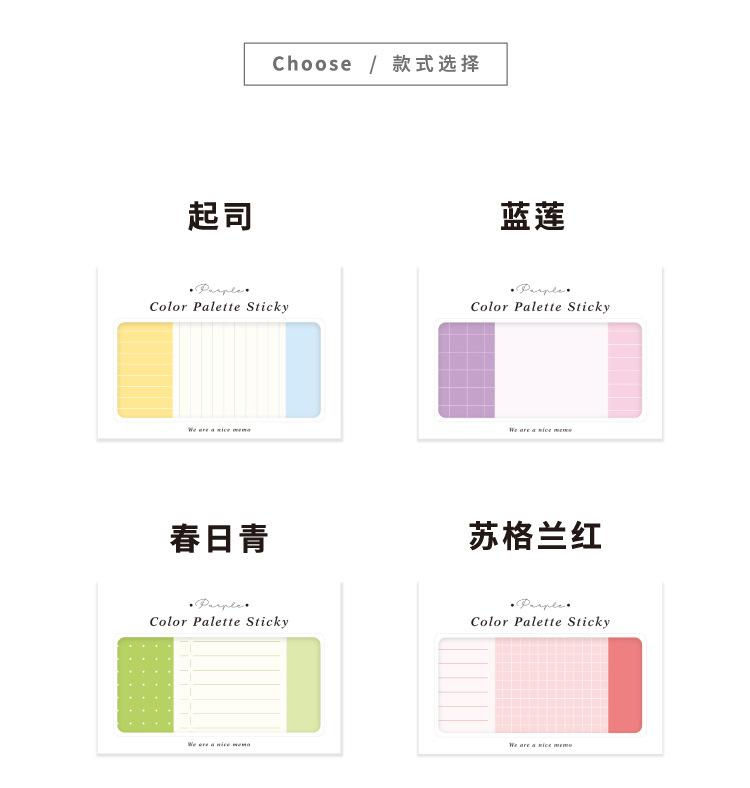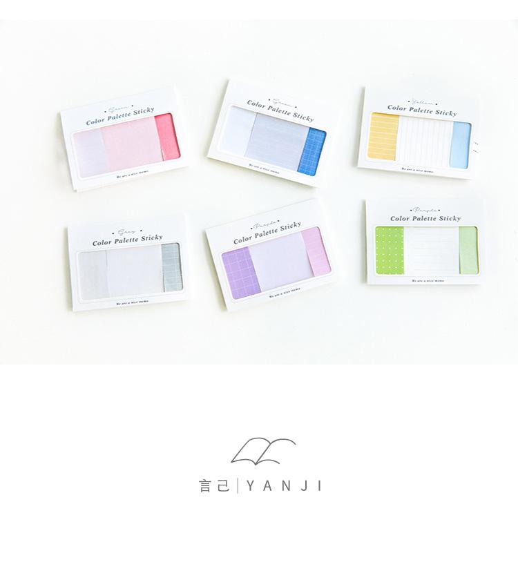 Pegatinas adhesivas Yan Ji Post-It, serie de paletas de colores básicos, pegatinas decorativas de material creativo fresco para cuentas manuales, 6 unidades