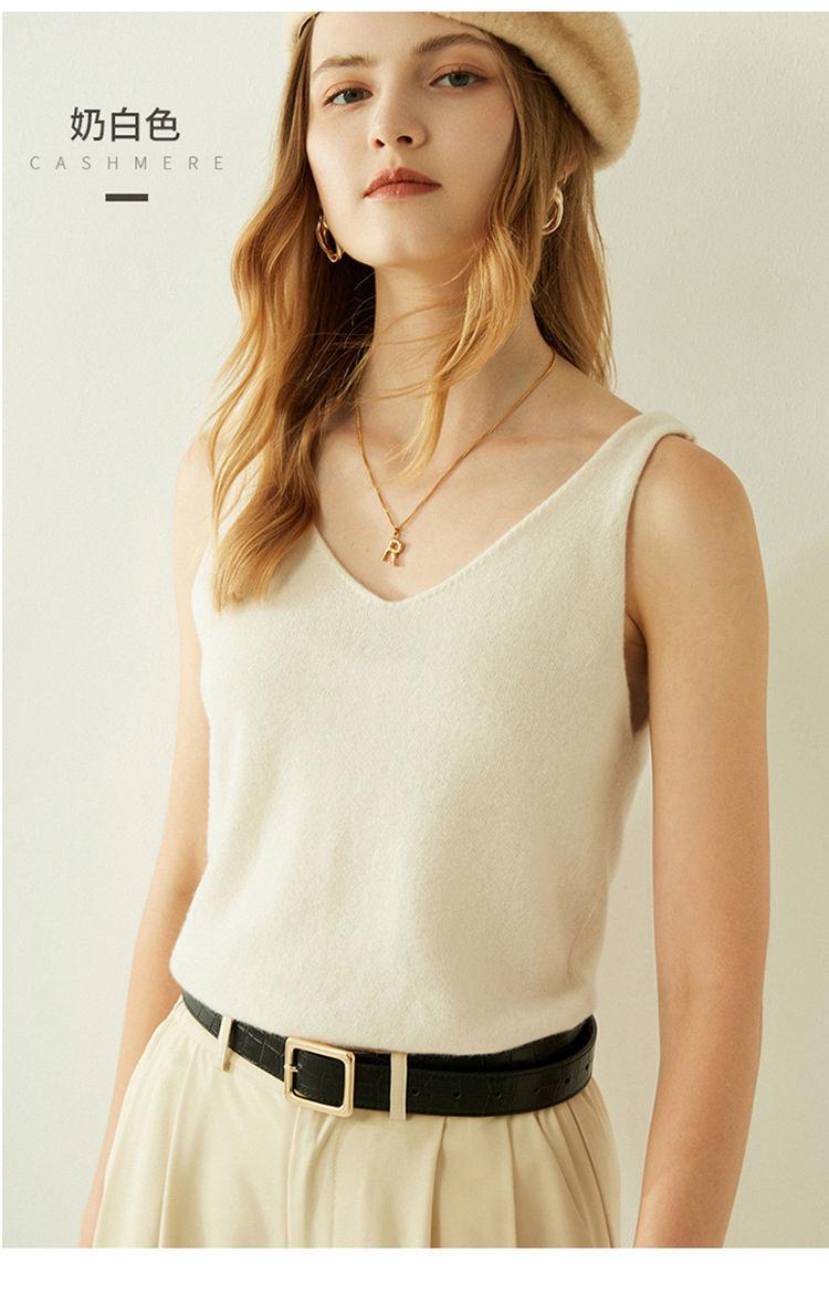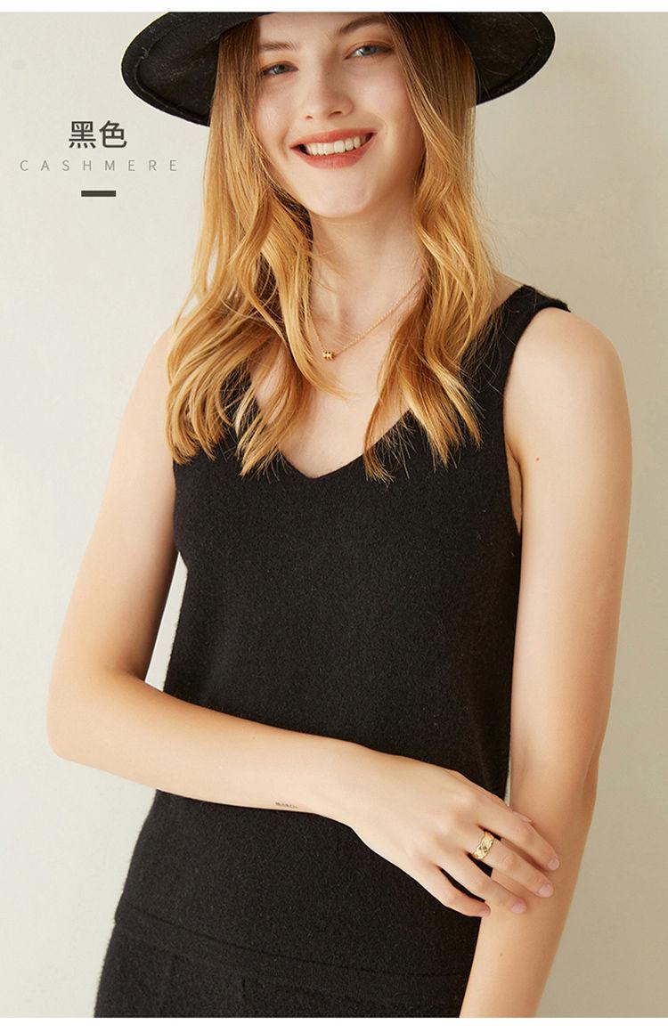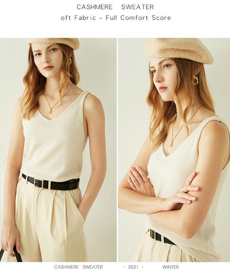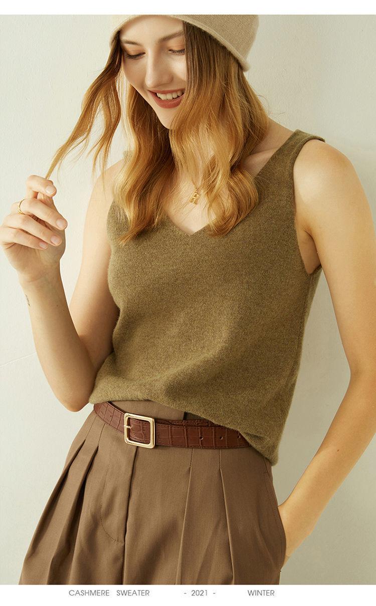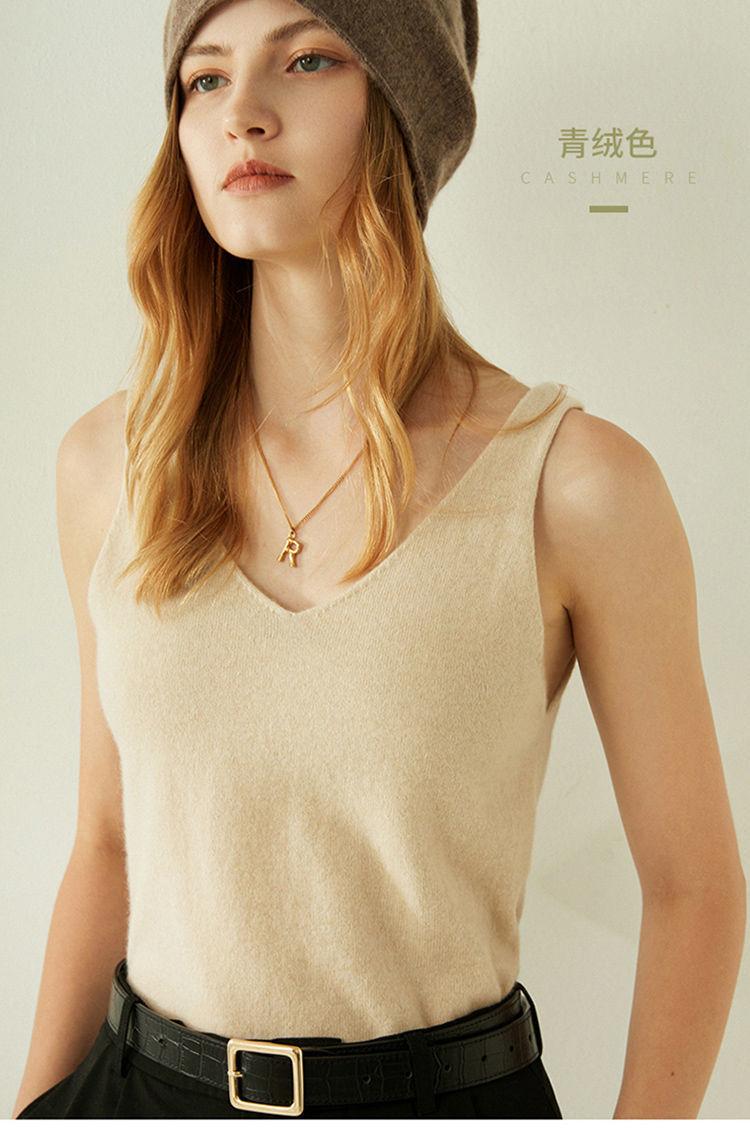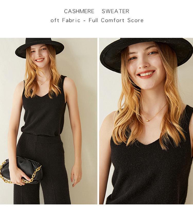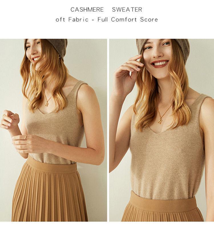Camisola de cachemira 100% pura para mujer, interior corta, ajustada, exterior, nueva, sin mangas, cuello en V, base de punto