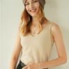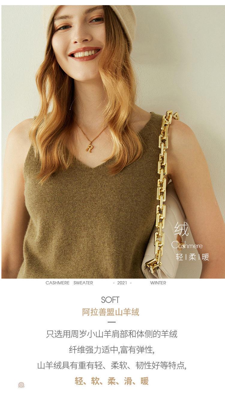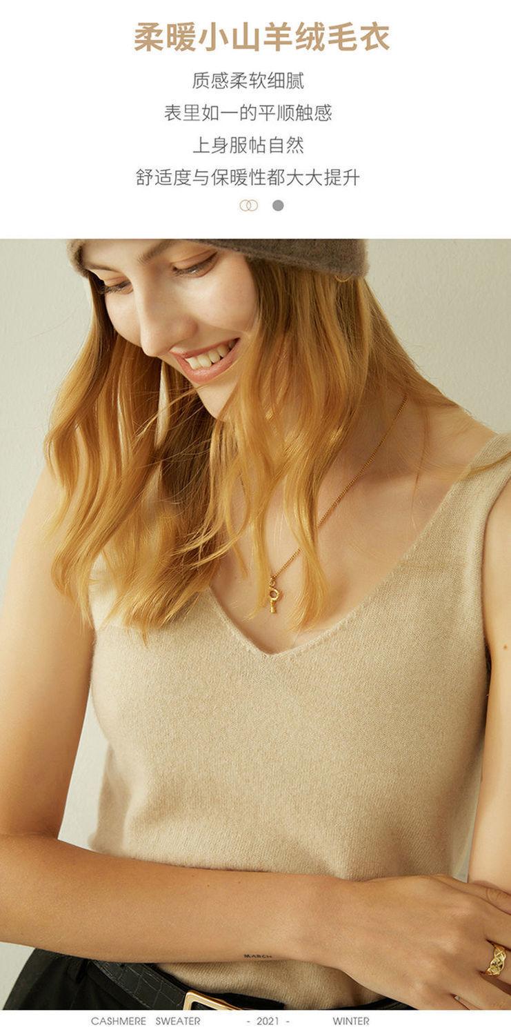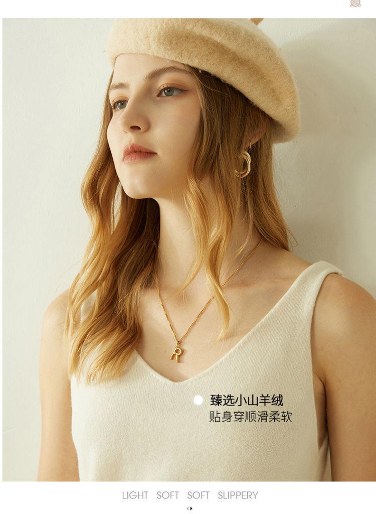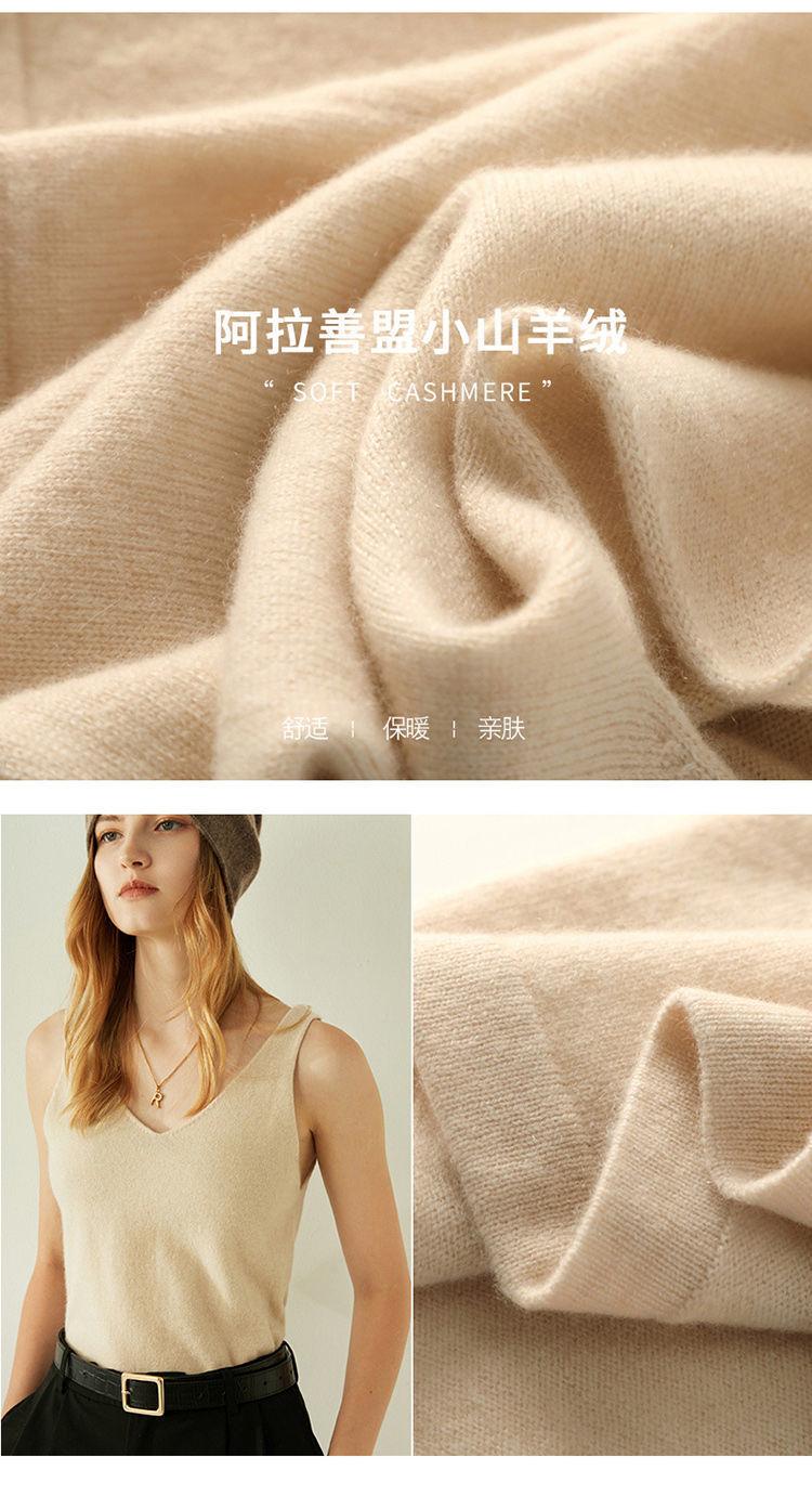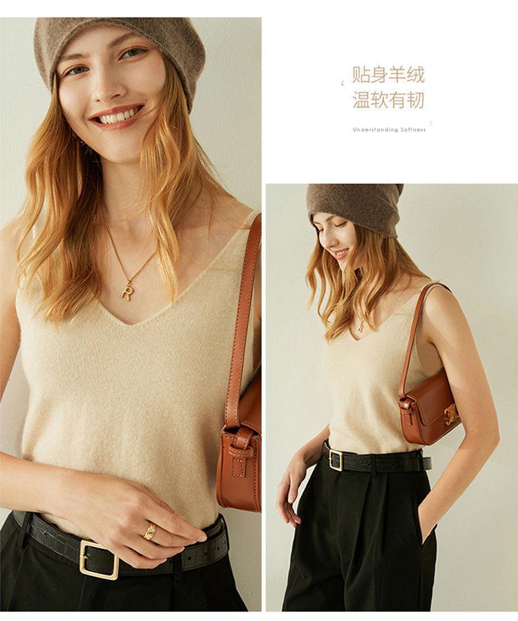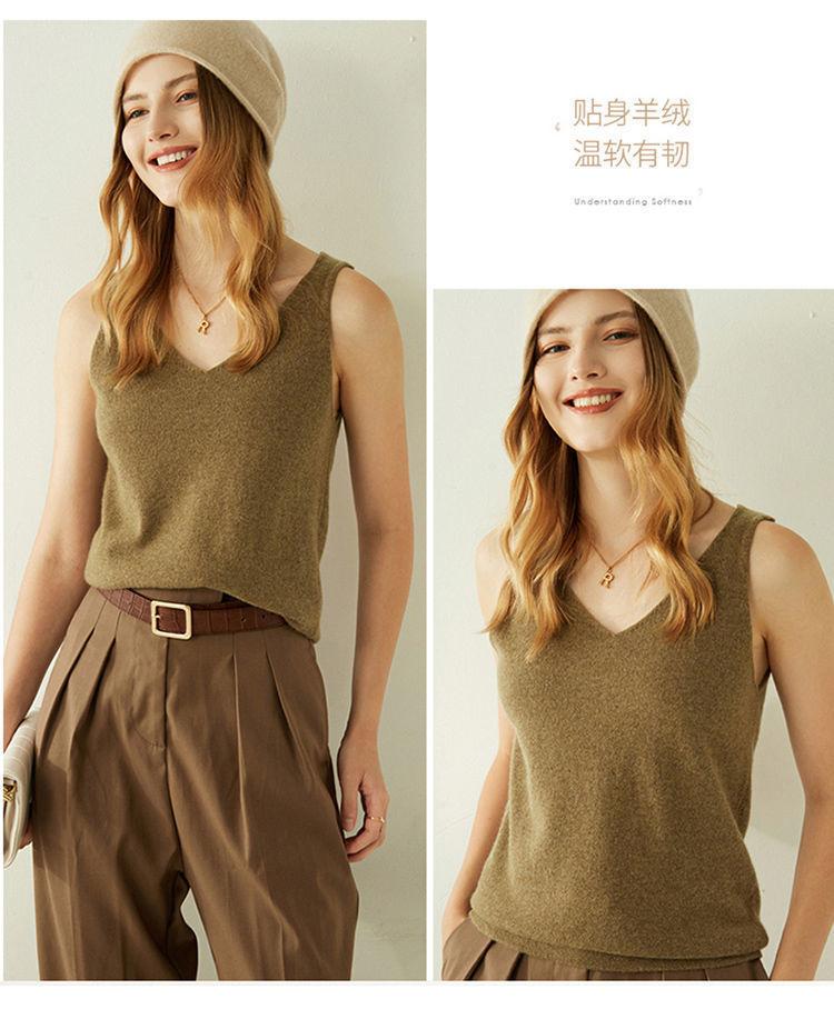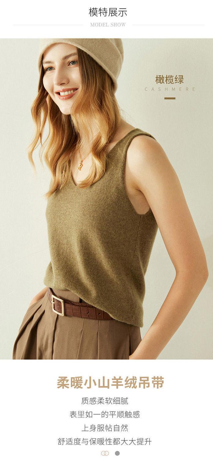 Camisola de cachemira 100% pura para mujer, interior corta, ajustada, exterior, nueva, sin mangas, cuello en V, base de punto
