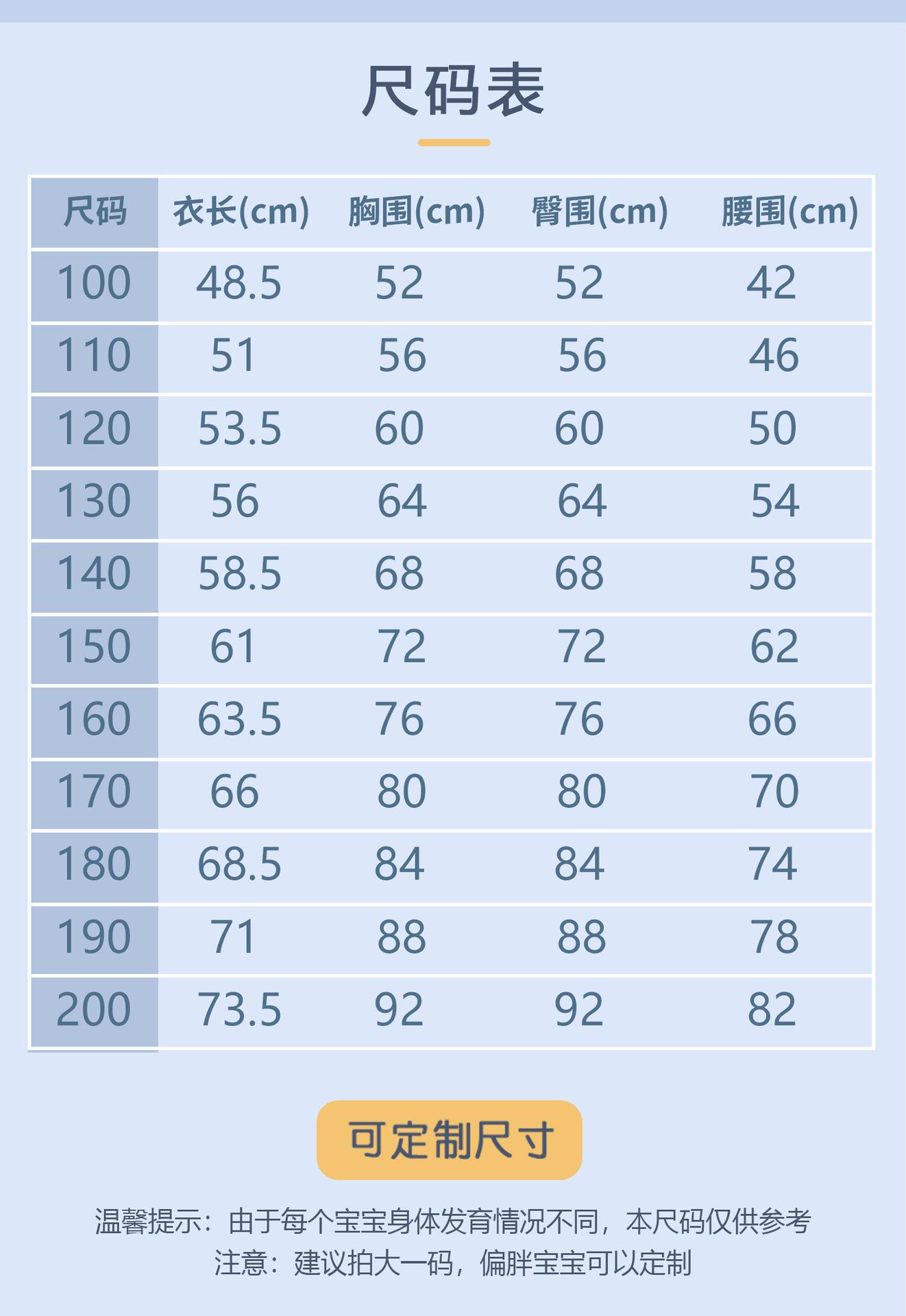 100cm, 110cm, 120cm, 130cm, 140cm, 150cm, 160cm, 170cm, Plus size customization