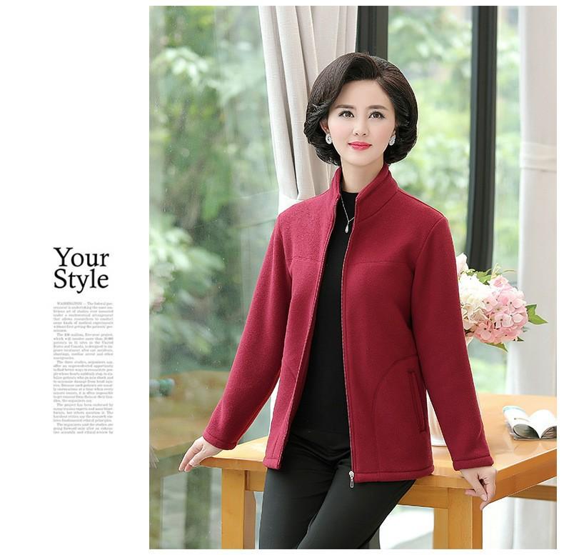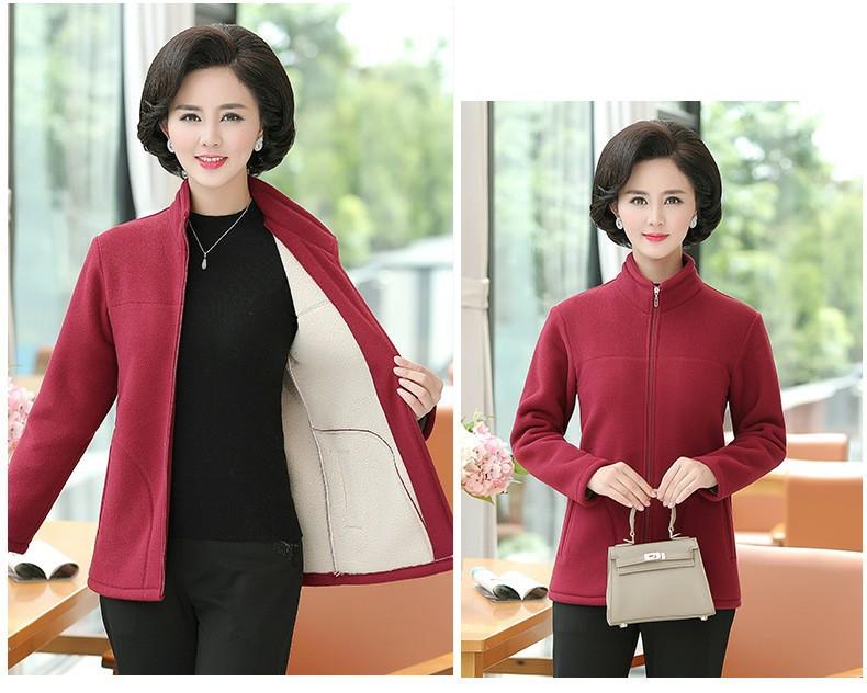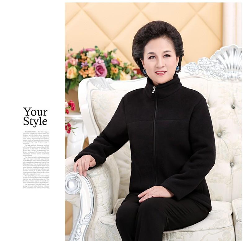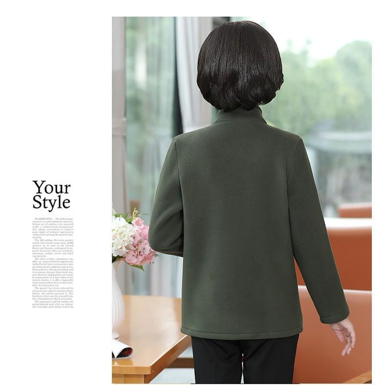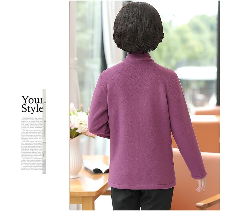 Ropa para mujeres de mediana edad y ancianas nuevo suéter polar de primavera y otoño top de mamá forrado de polar cuello alto abrigado