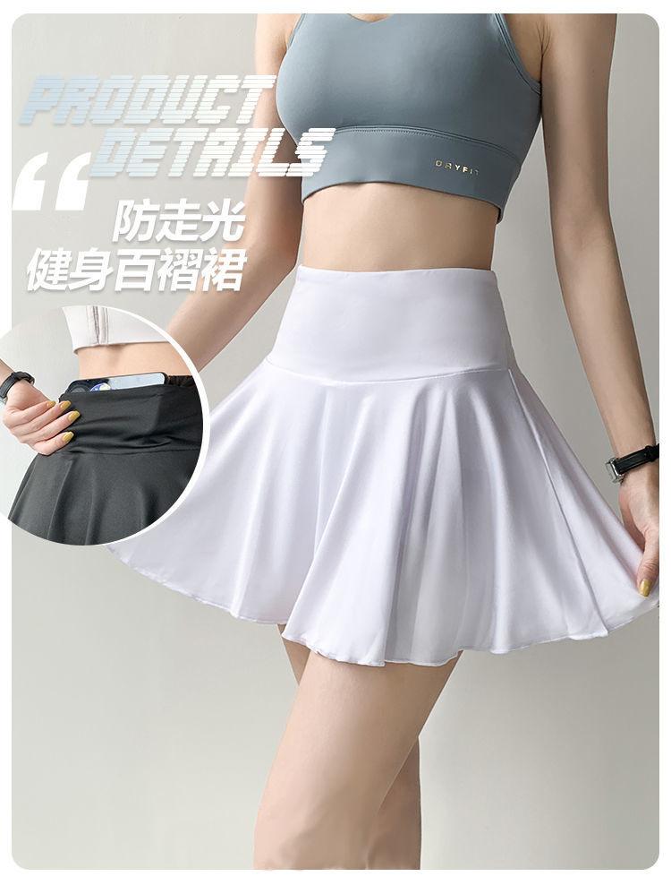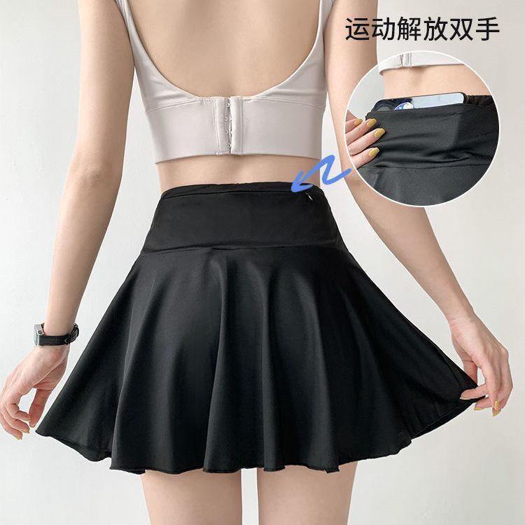 Falda de tenis para mujer, yoga, color sólido, bádminton, falda plisada, verano, fitness, deportes, shorts, falda para correr anti-exposición