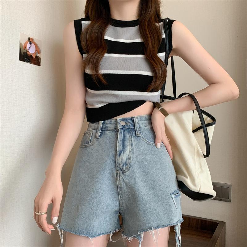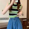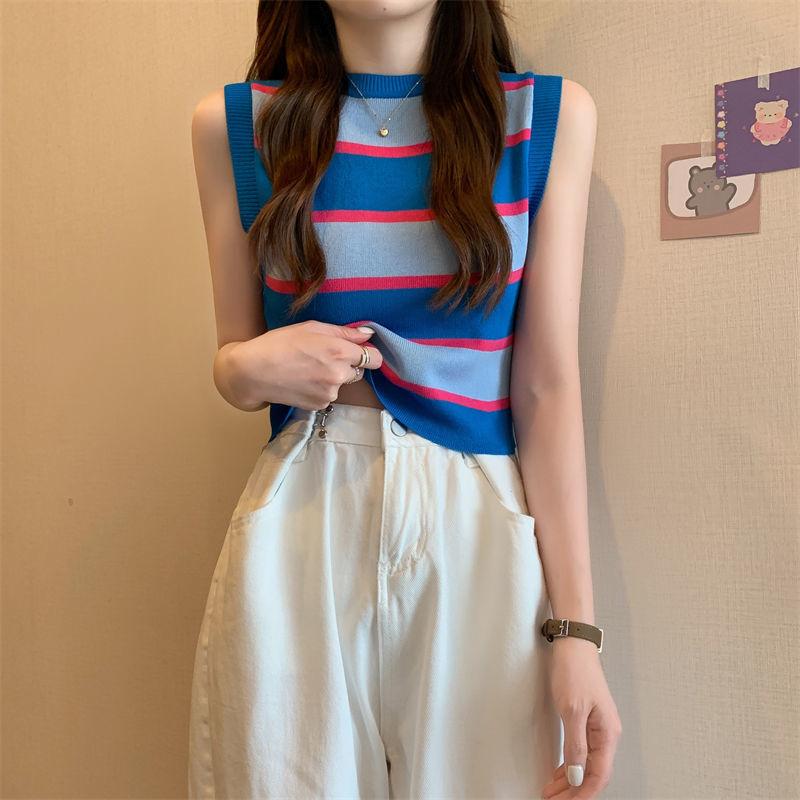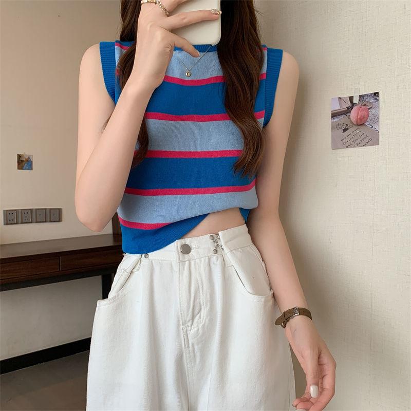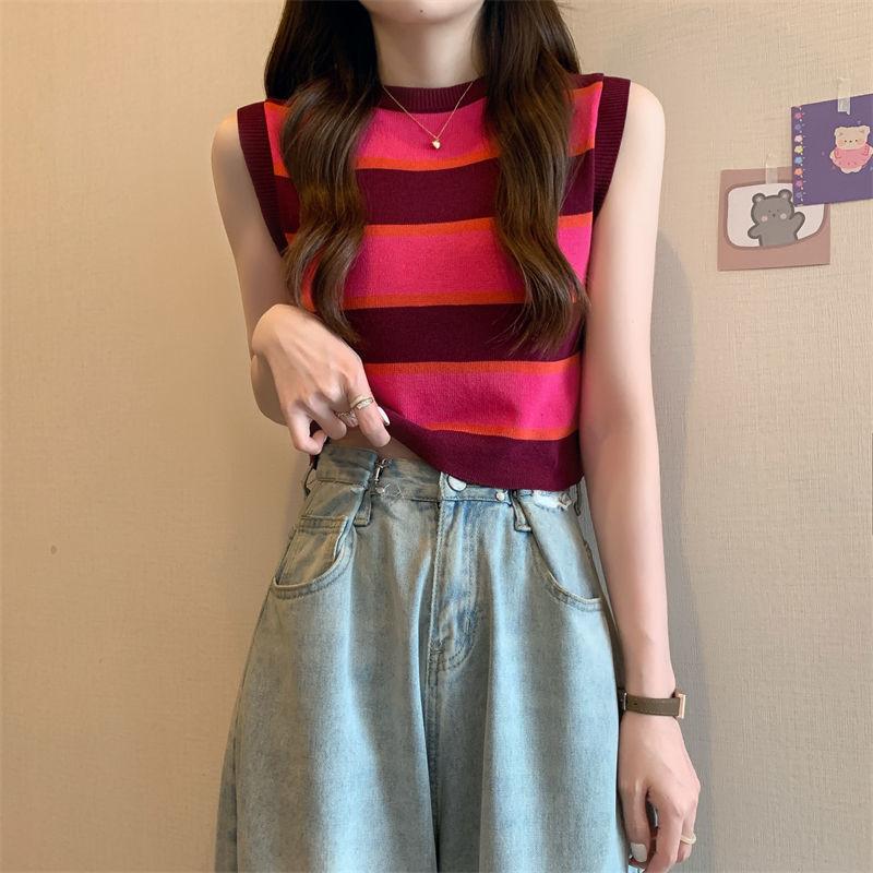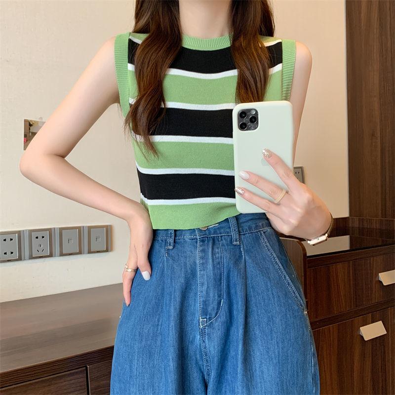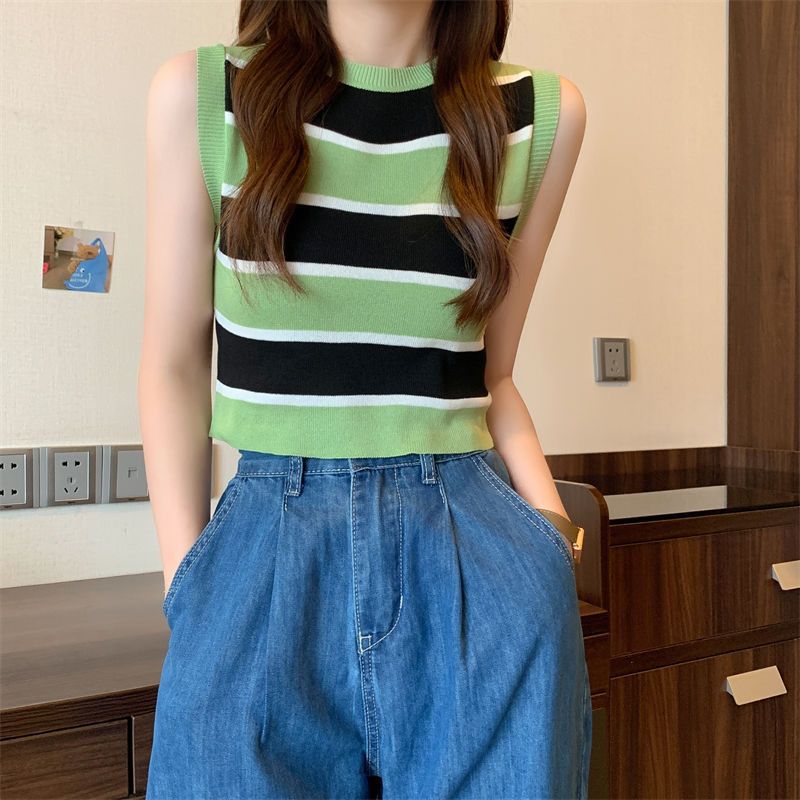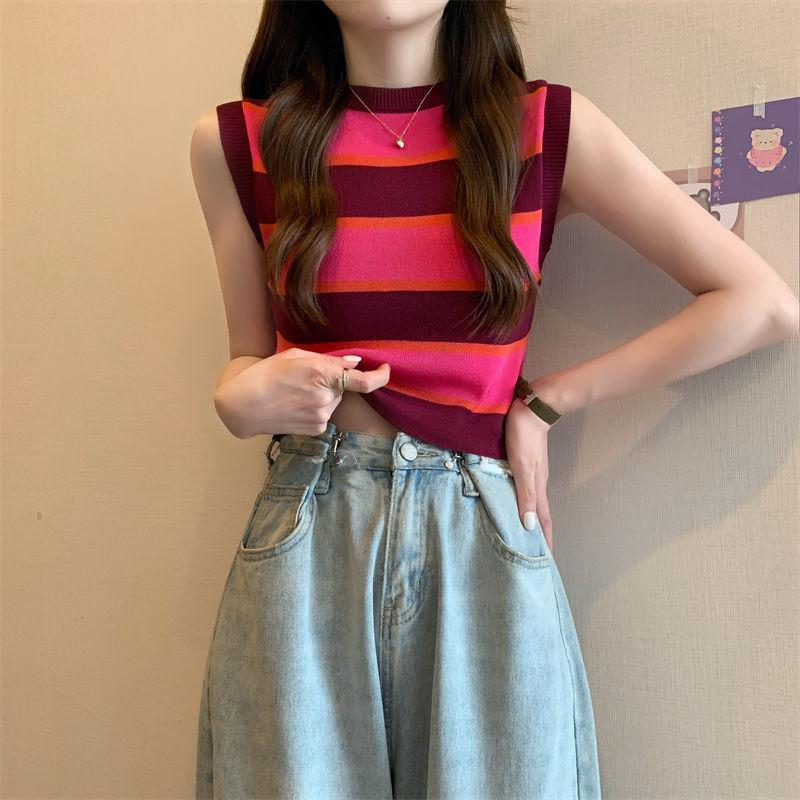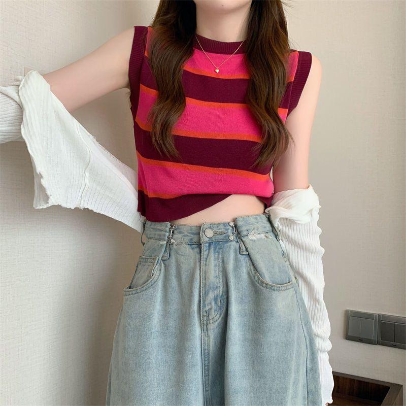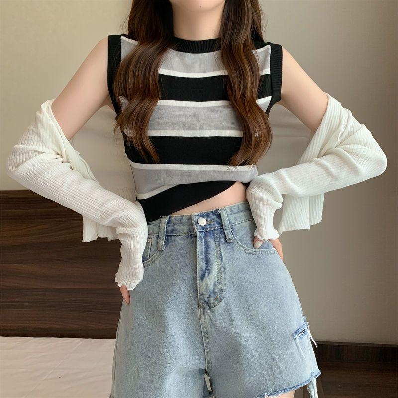 Chaleco de Punto Rayado Tirantes para Mujer Verano 2025 Nuevo Estilo Prenda Interior y Exterior Top Corto Deportivo sin Mangas Ins Trend