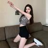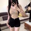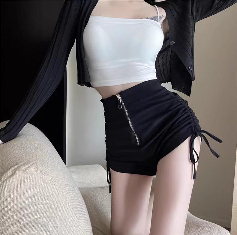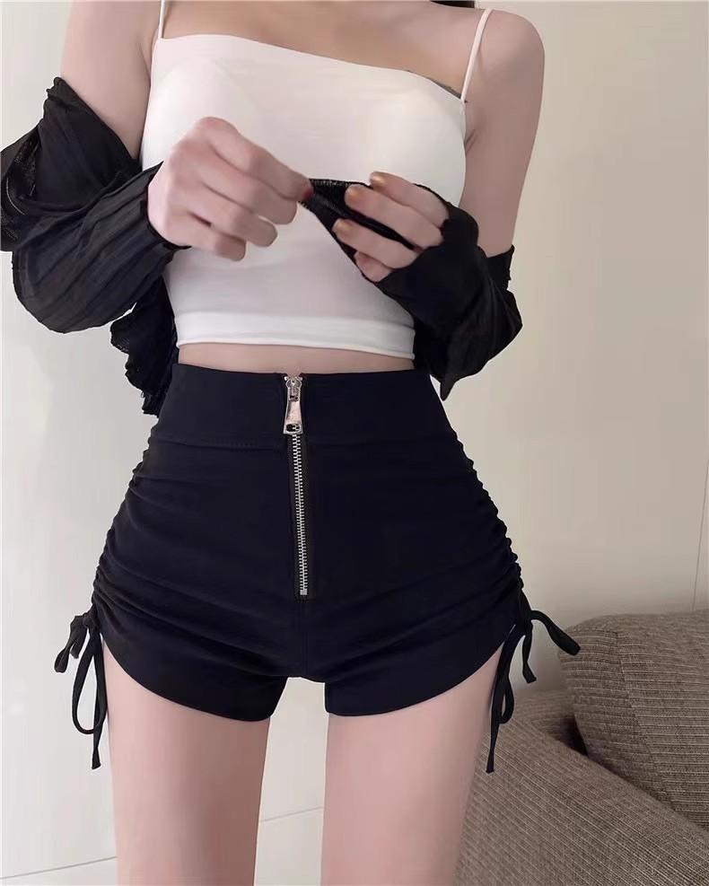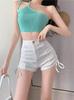 Pantalones cortos informales, ajustados, de cintura alta y corte A, con cordón ajustable, para verano, para mujer americana 2024