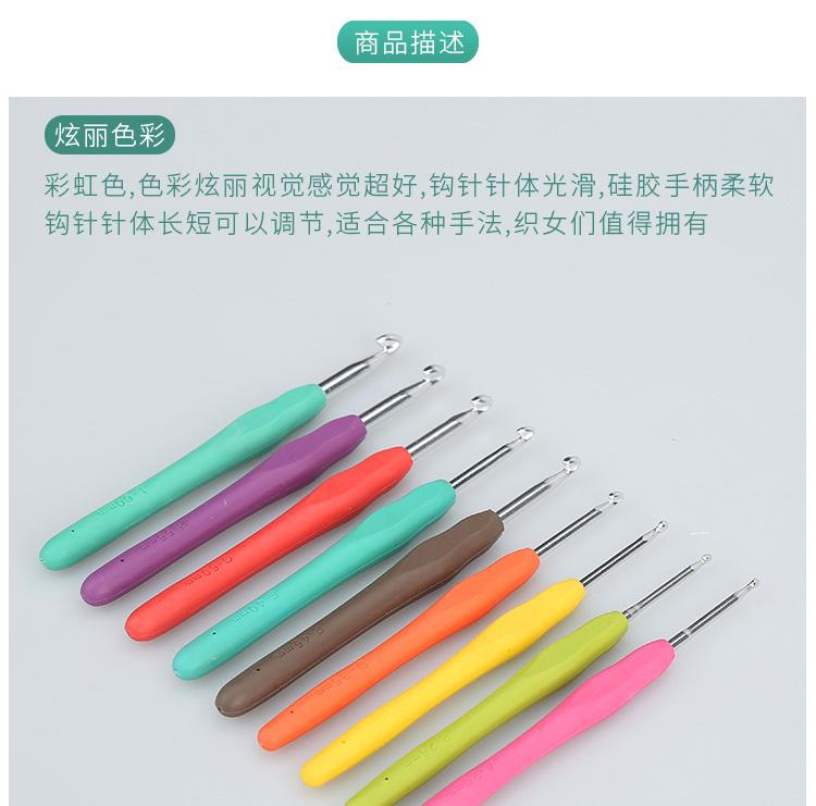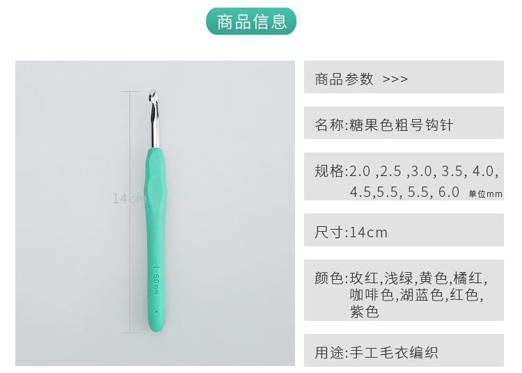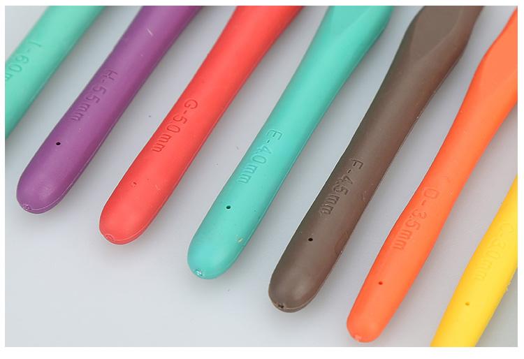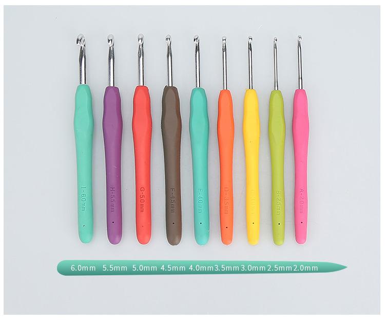 As shown in crochet set, 2.0mm one, 2.5mm one, 3.0mm one, 3.5mm one, 4mm one, A 4.5mm, 5mm one, 5.5mm one, 6mm one