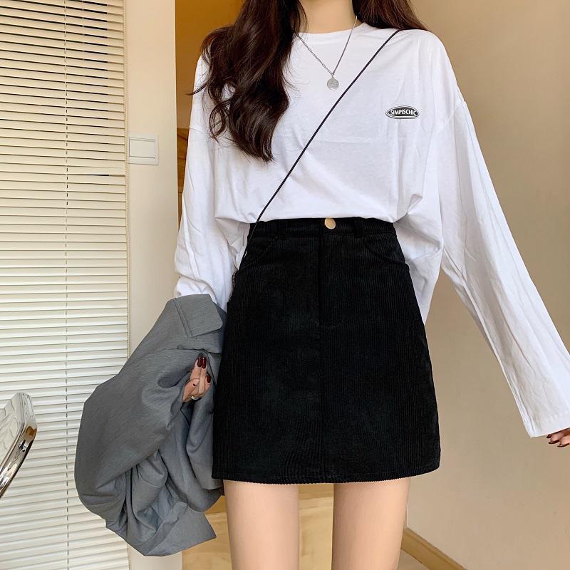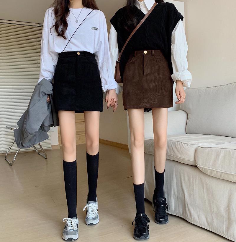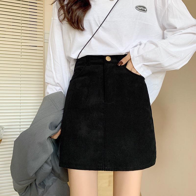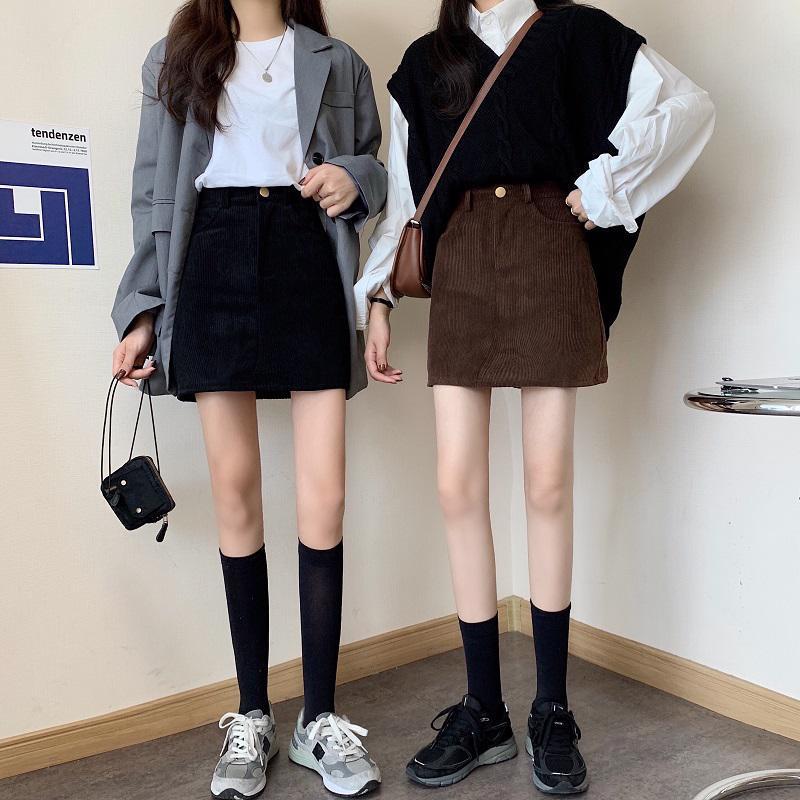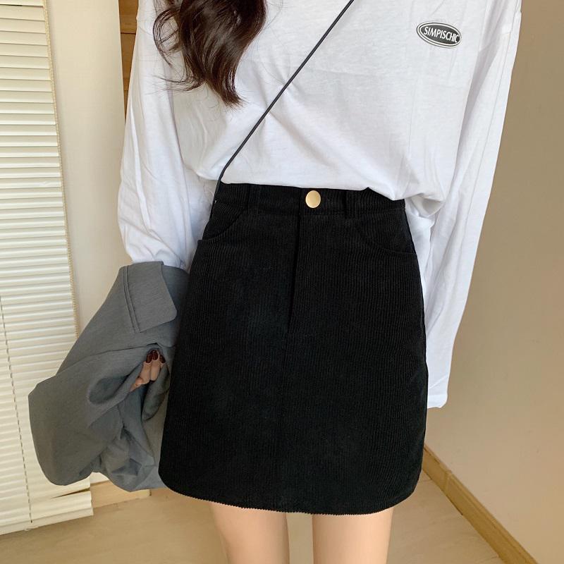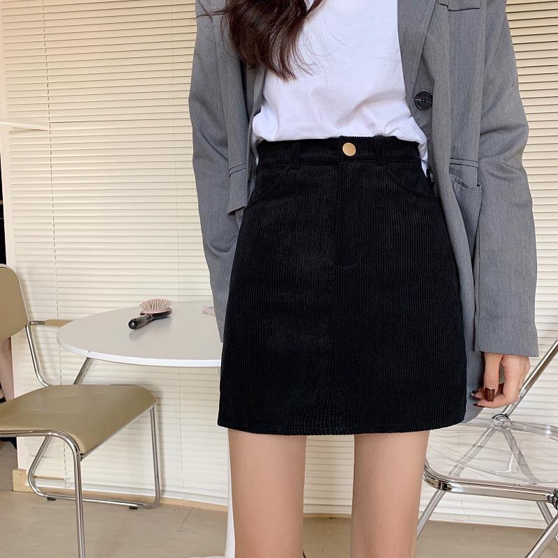 Falda corta de pana para mujer, otoño e invierno, falda pequeña en forma de A, falda de cadera, primavera 2022, nuevo temperamento, delgada, de media longitud