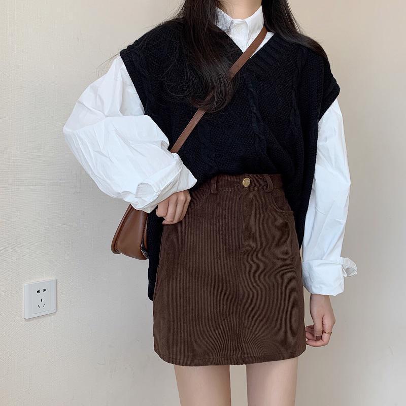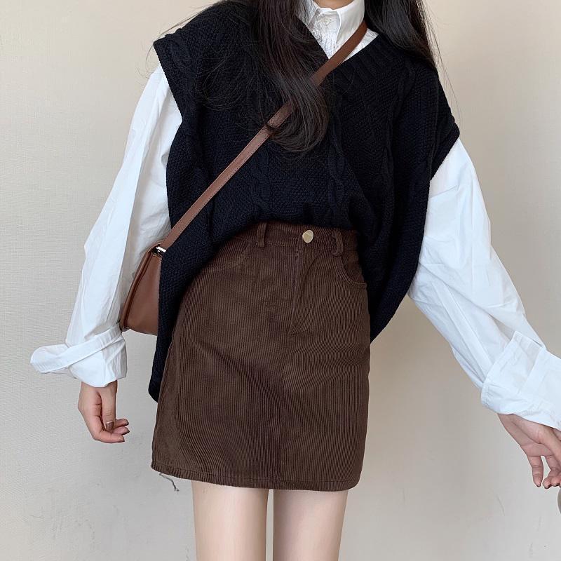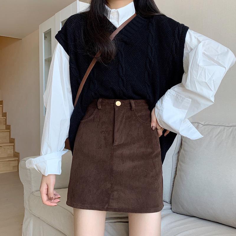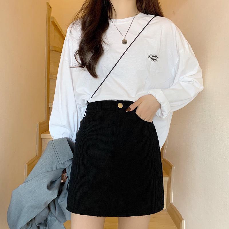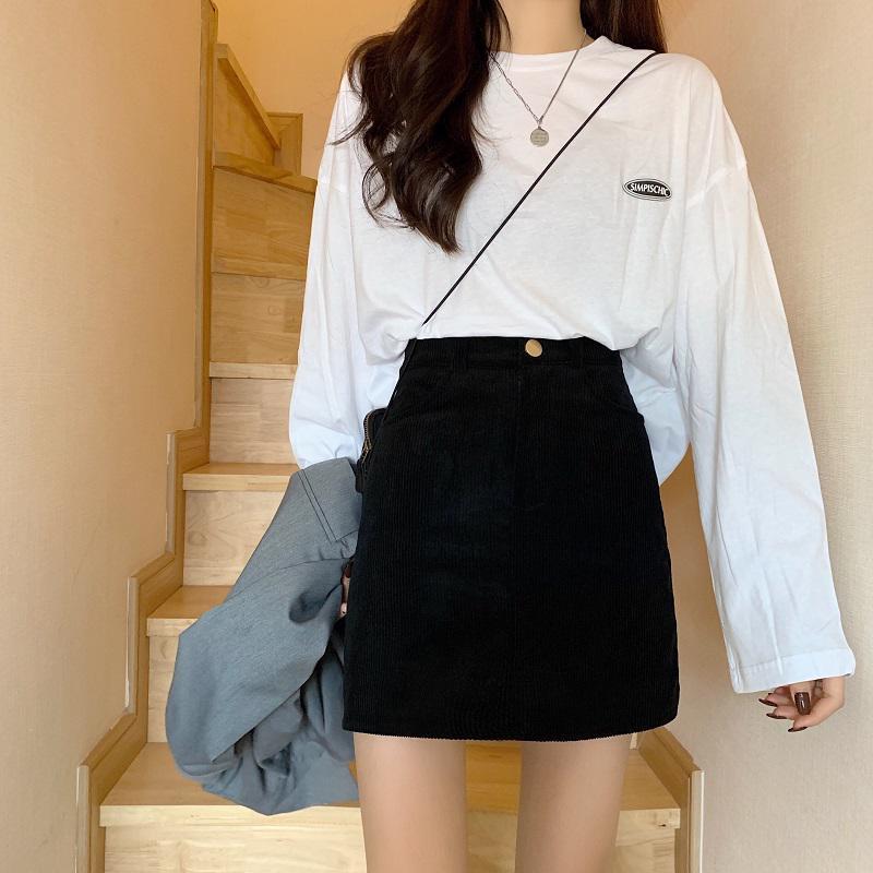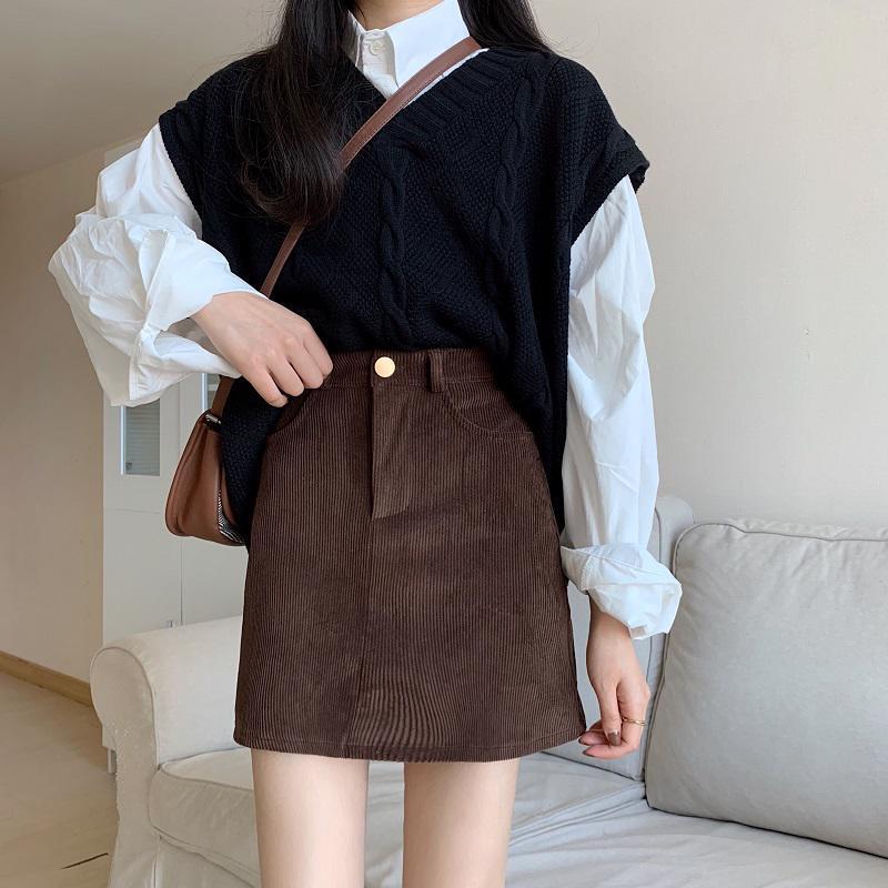 Falda corta de pana para mujer, otoño e invierno, falda pequeña en forma de A, falda de cadera, primavera 2022, nuevo temperamento, delgada, de media longitud
