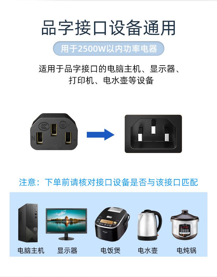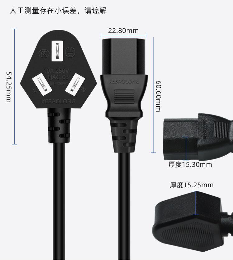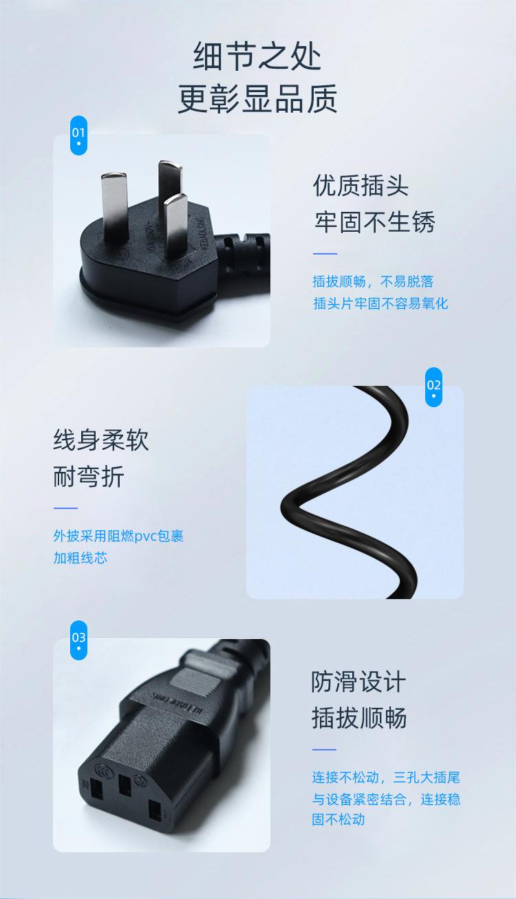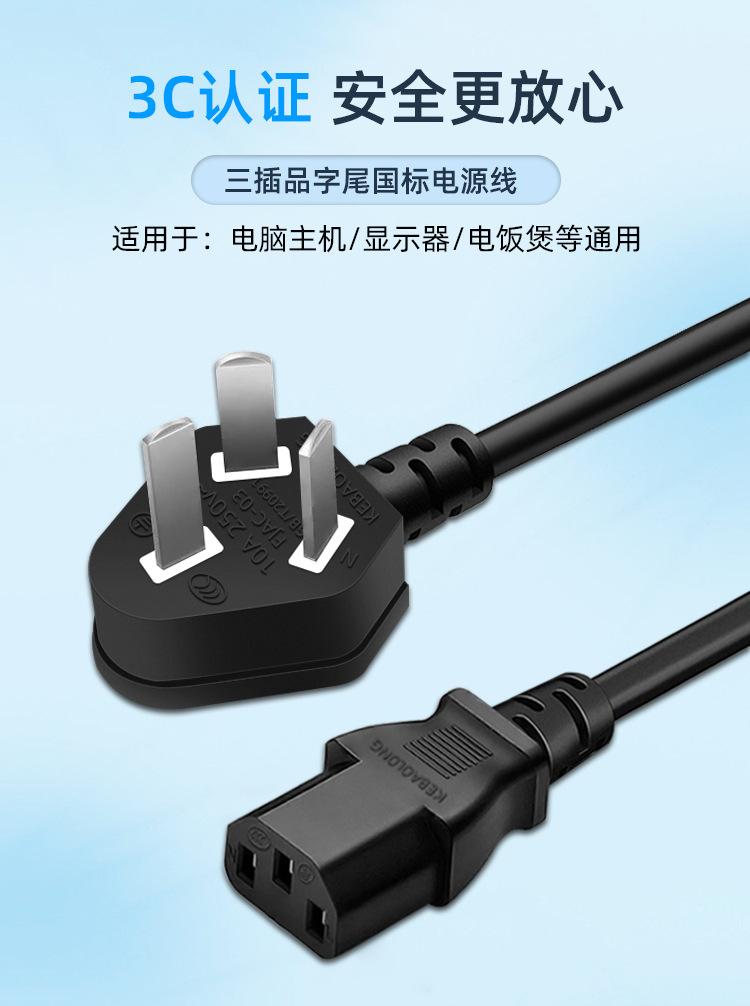Cable de alimentación de tres enchufes estándar nacional, suministro directo de fábrica, cable de alimentación de host de computadora, conector de tubería con certificación CCC.