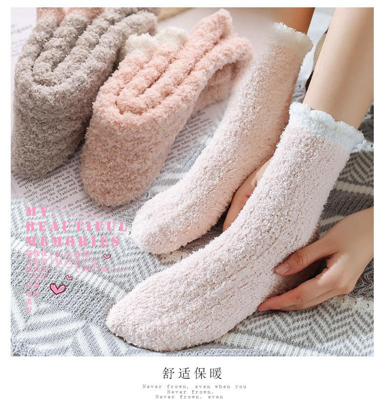 Calcetines de dormir de vellón coral, calcetines de suelo para embarazadas, calcetines maternales, calcetines torcidos, calcetines de vellón de color liso.
