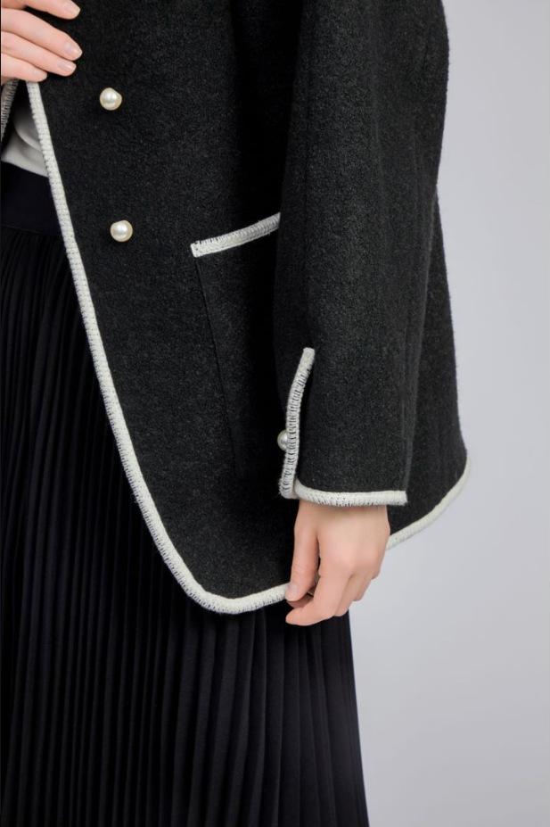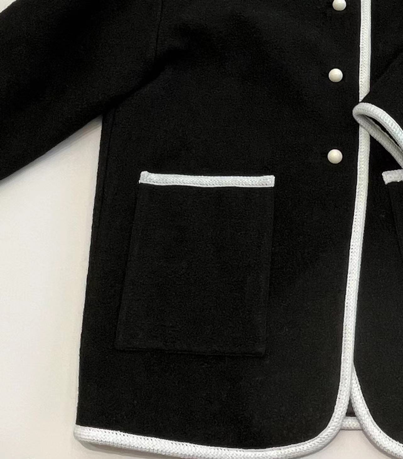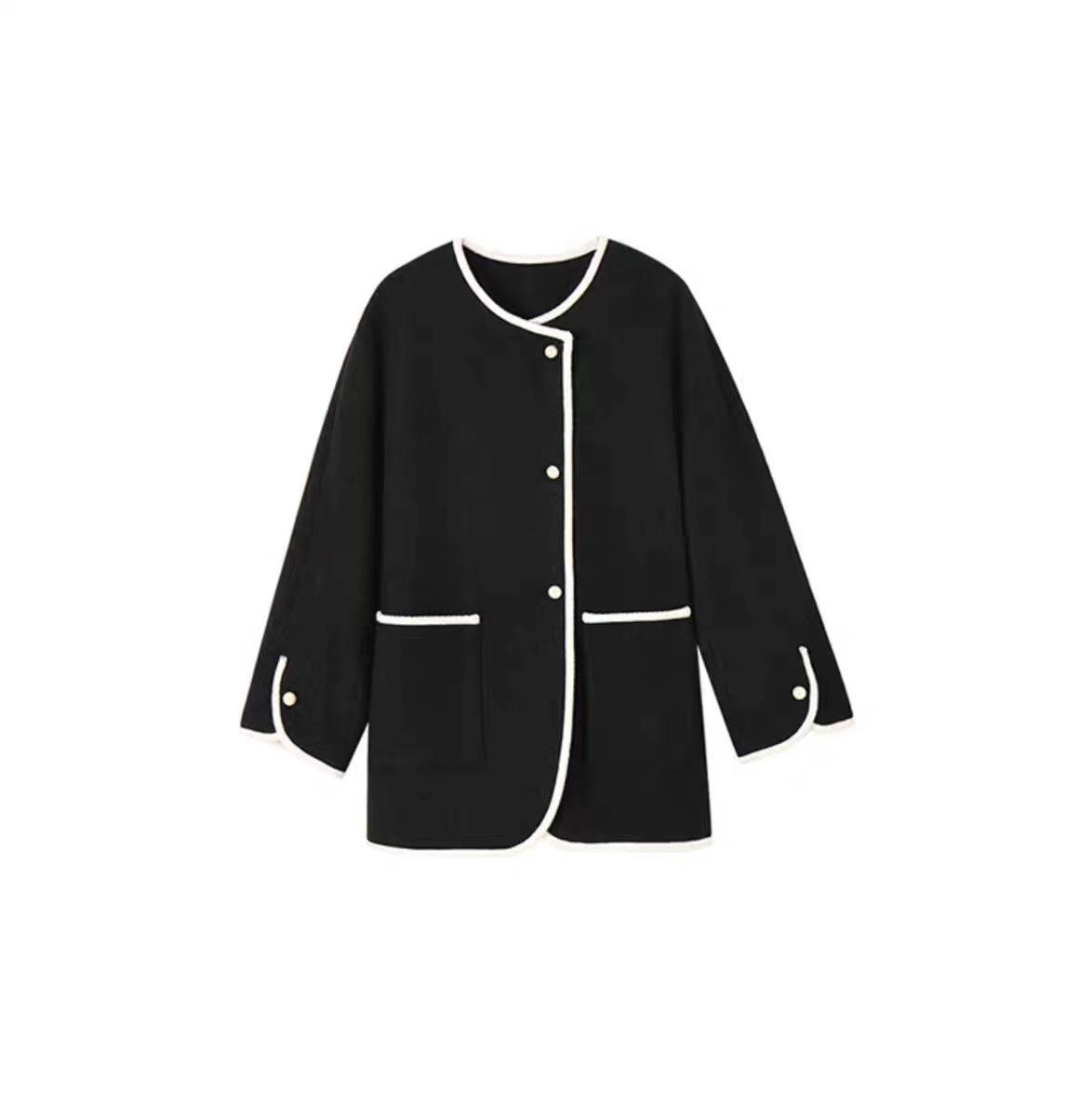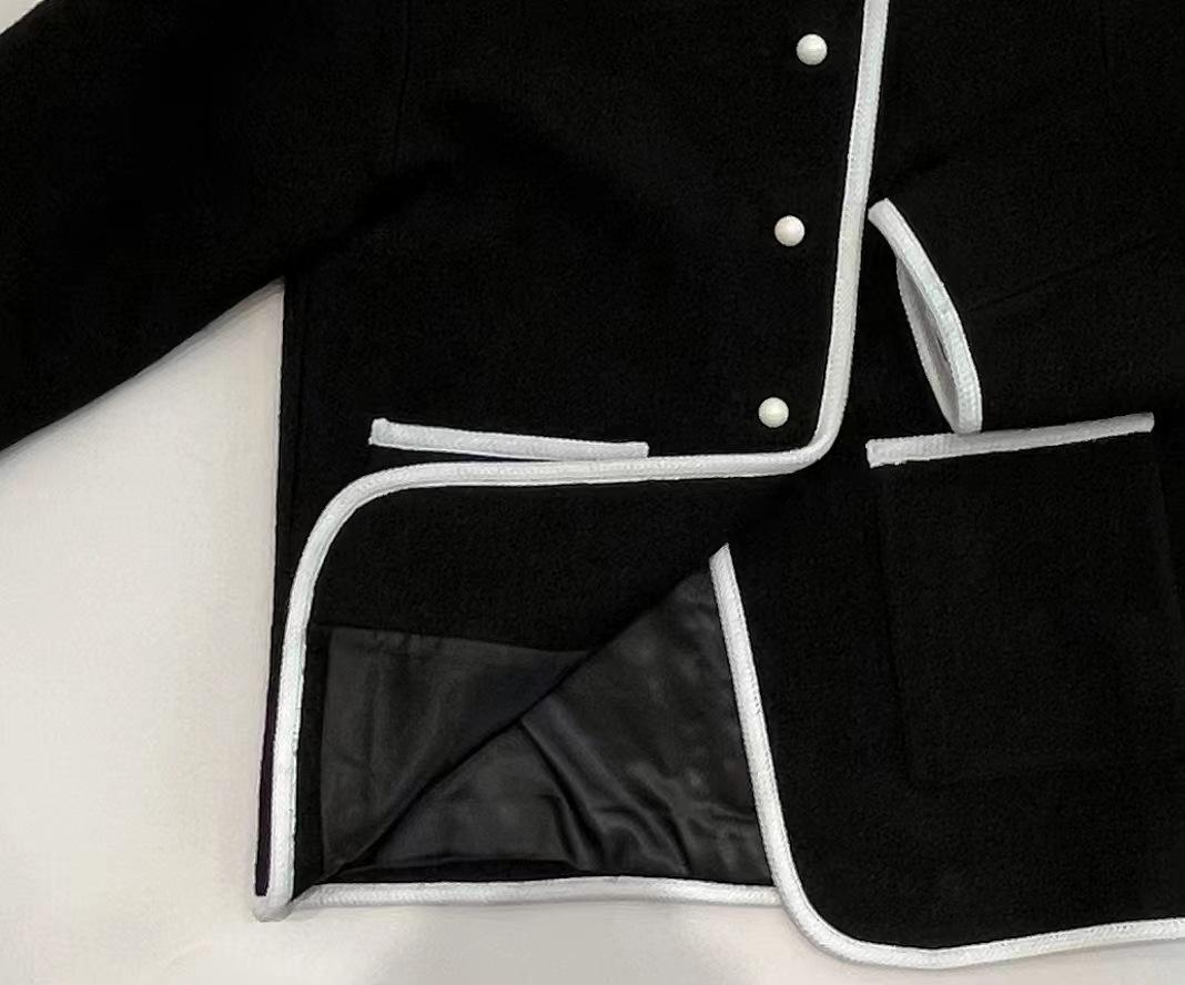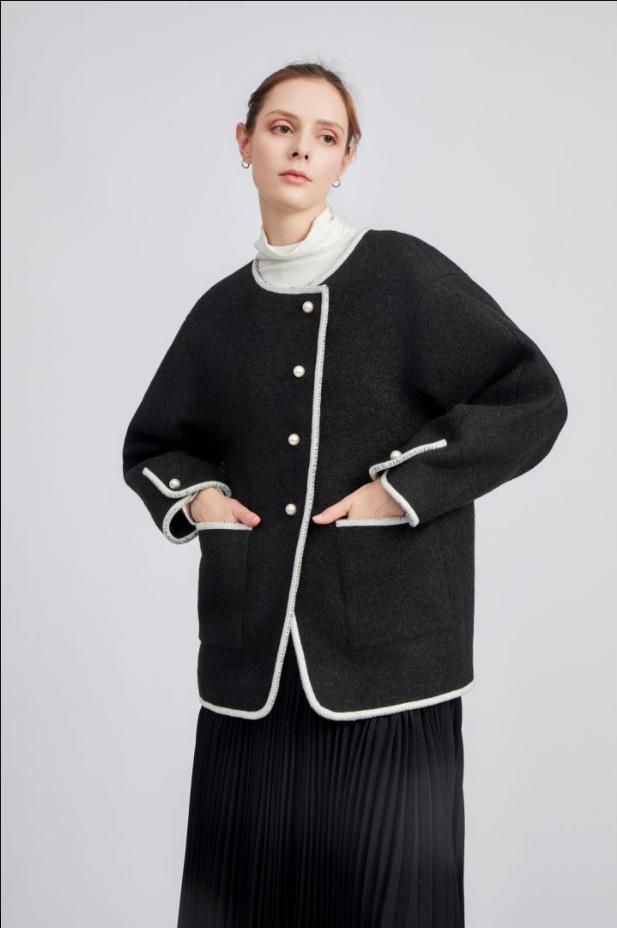 Abrigo de lana de otoño e invierno nuevo con solapa estilo francés Chanel, abrigo de lana de color en contraste, abrigo de lana de doble cara, estilo retro nuevo