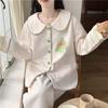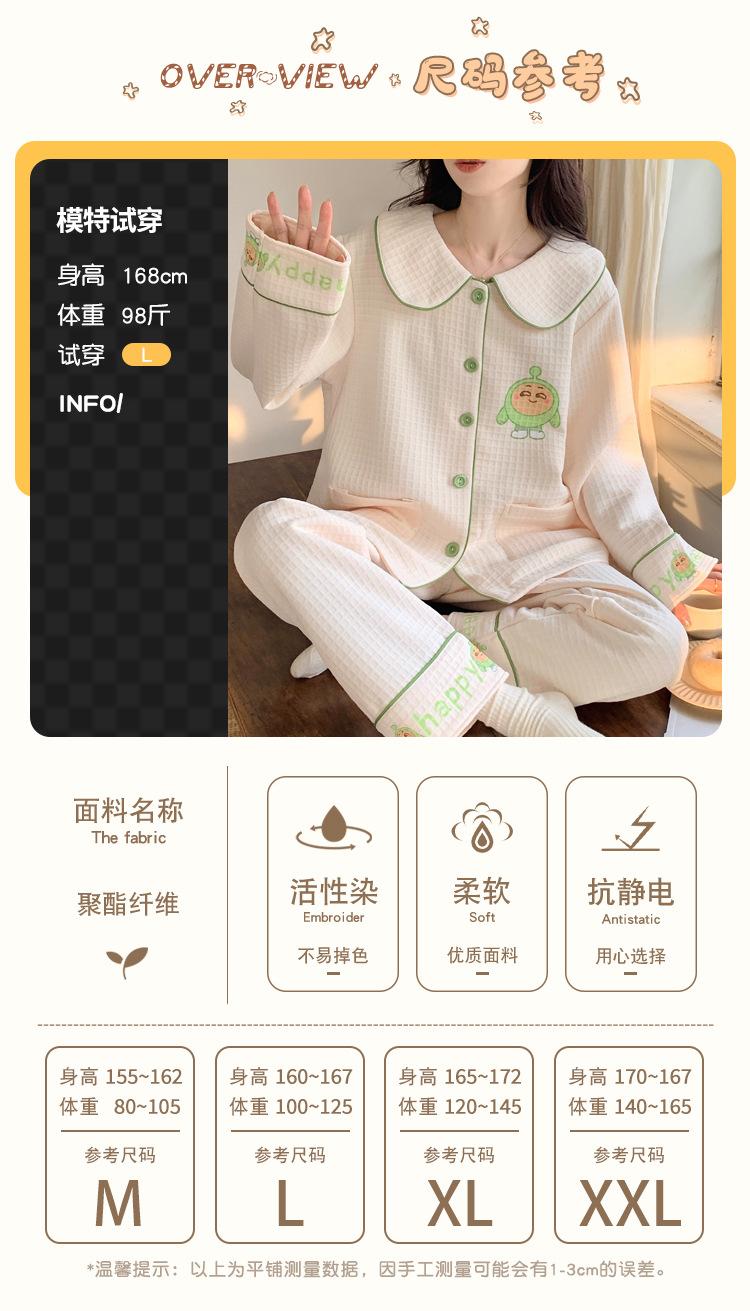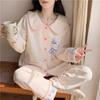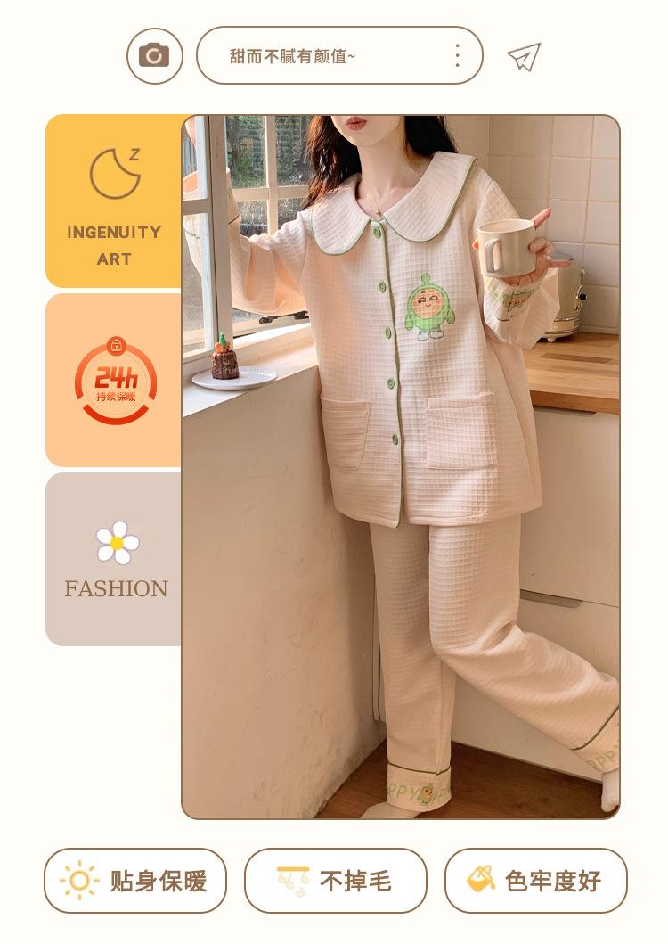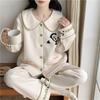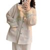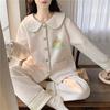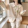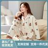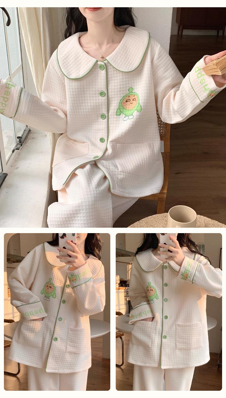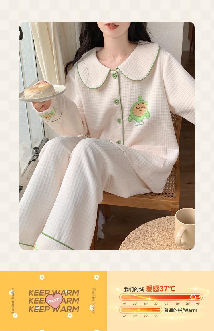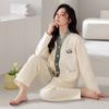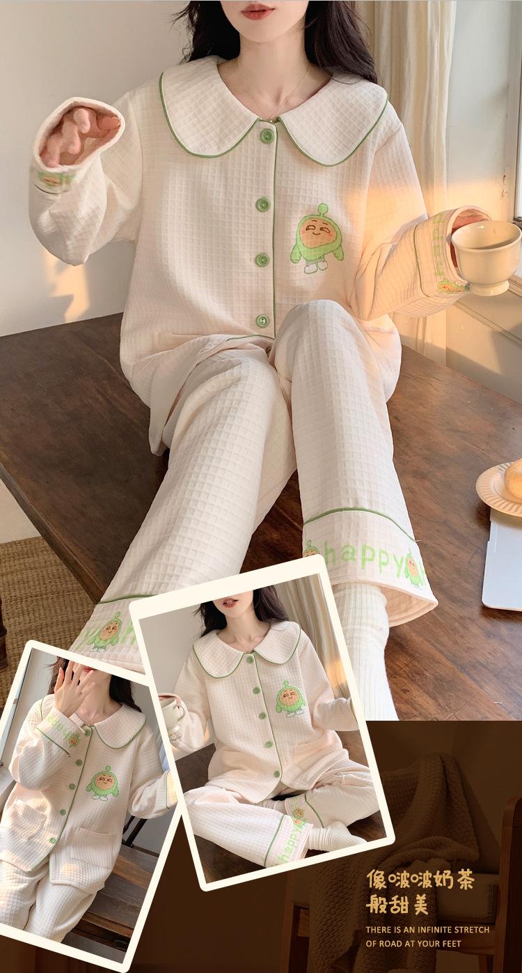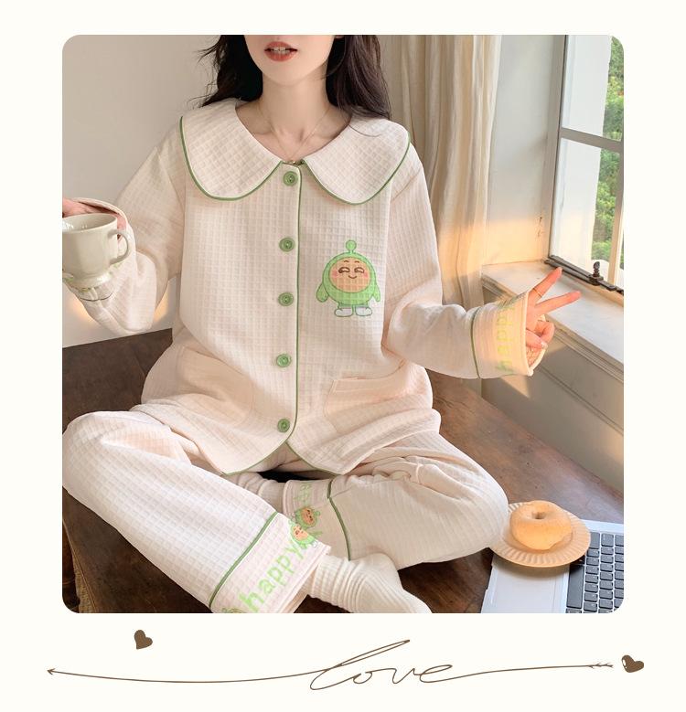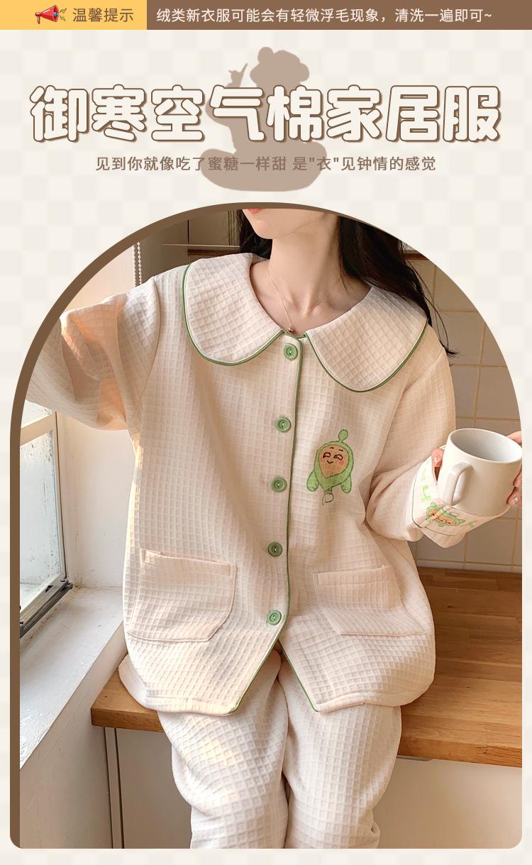 Pijama tipo sándwich de otoño e invierno para mujer, cárdigan con solapa de dibujos animados, de algodón aireado, de tres capas, grueso y cálido, ropa para el hogar