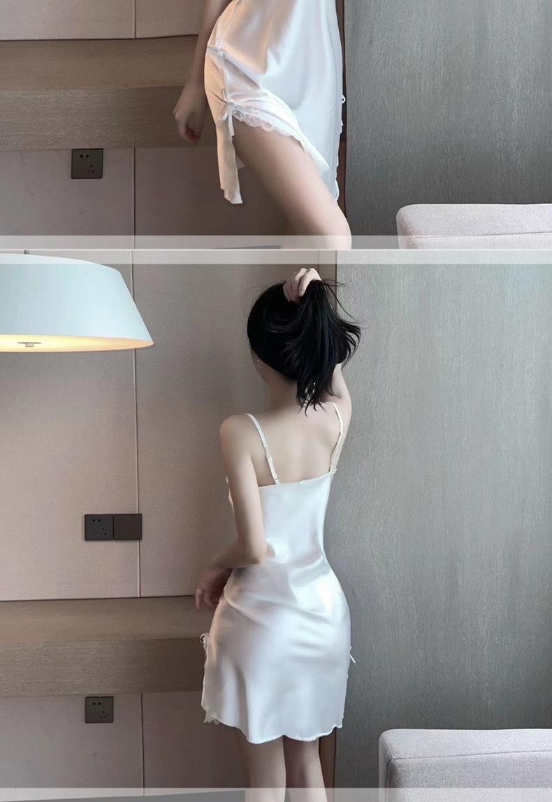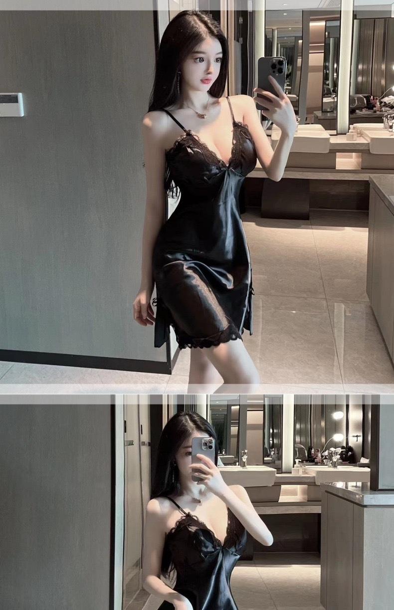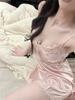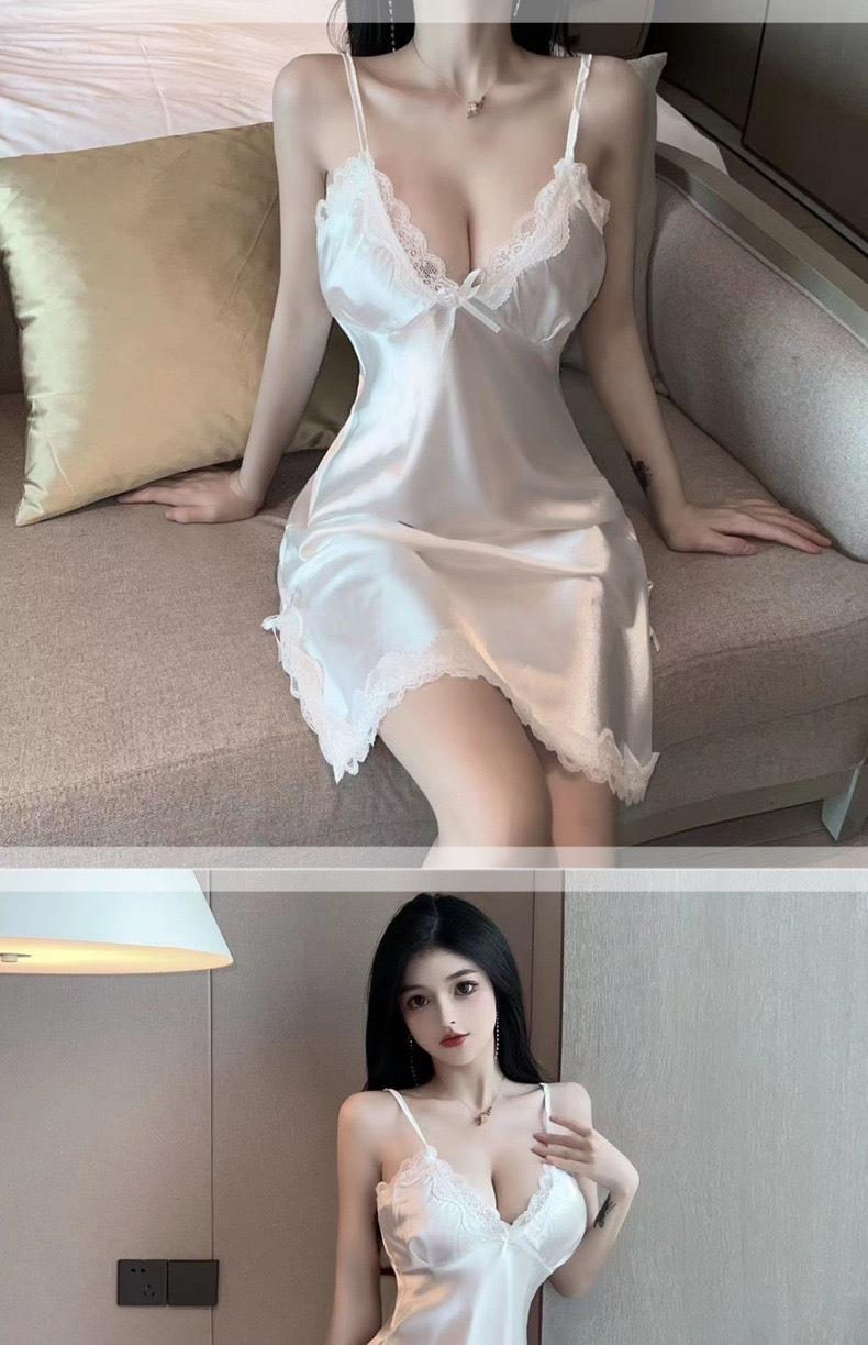 Pijama de verano de seda de hielo con tirantes y almohadilla para el pecho, sexy, con encaje de cuello en V, camisón fresco fino, nuevo para 2024, para estar en casa