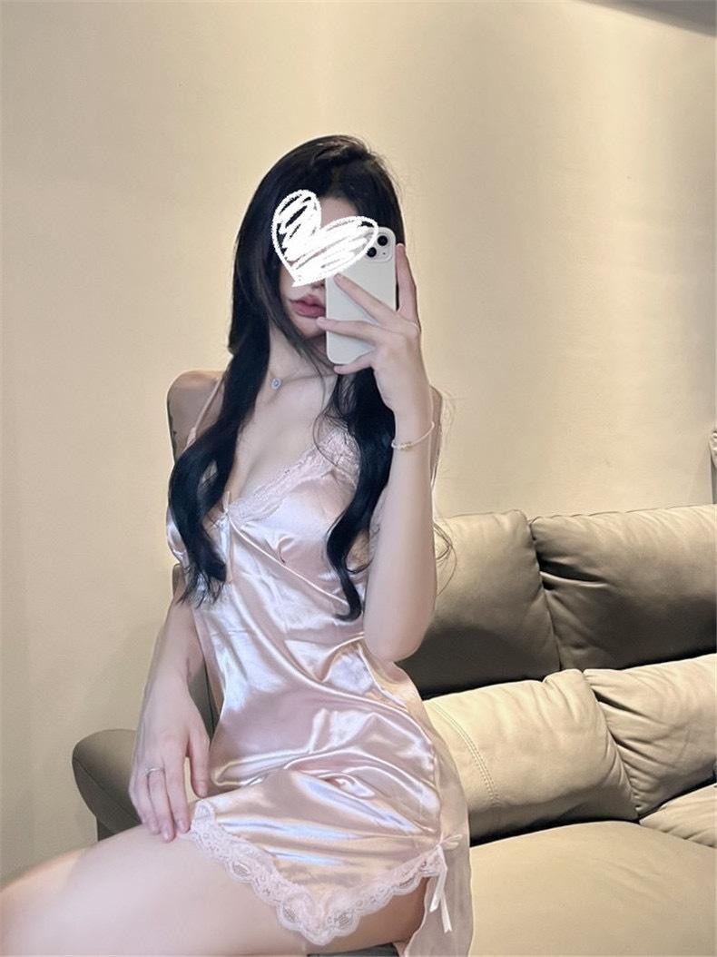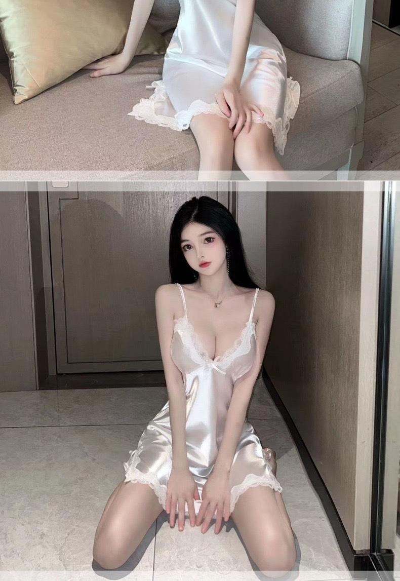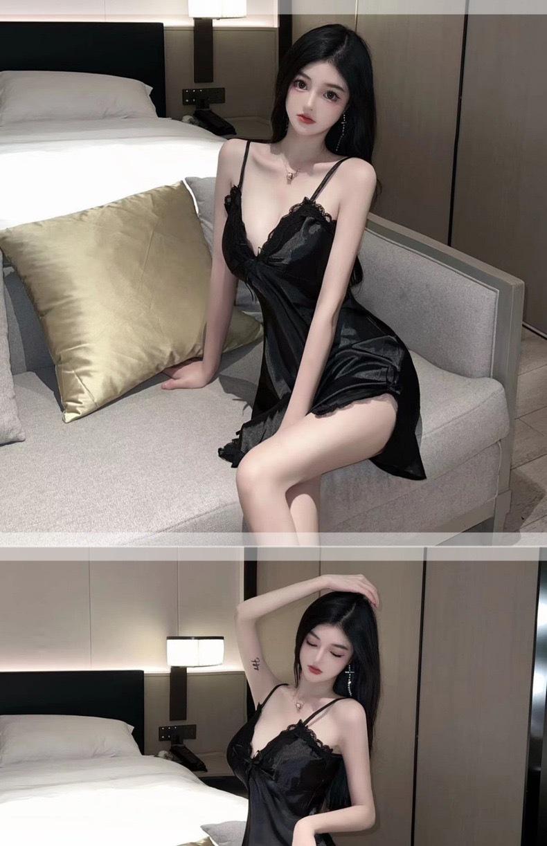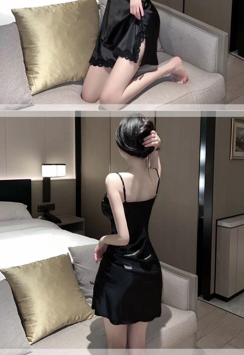 Pijama de verano de seda de hielo con tirantes y almohadilla para el pecho, sexy, con encaje de cuello en V, camisón fresco fino, nuevo para 2024, para estar en casa