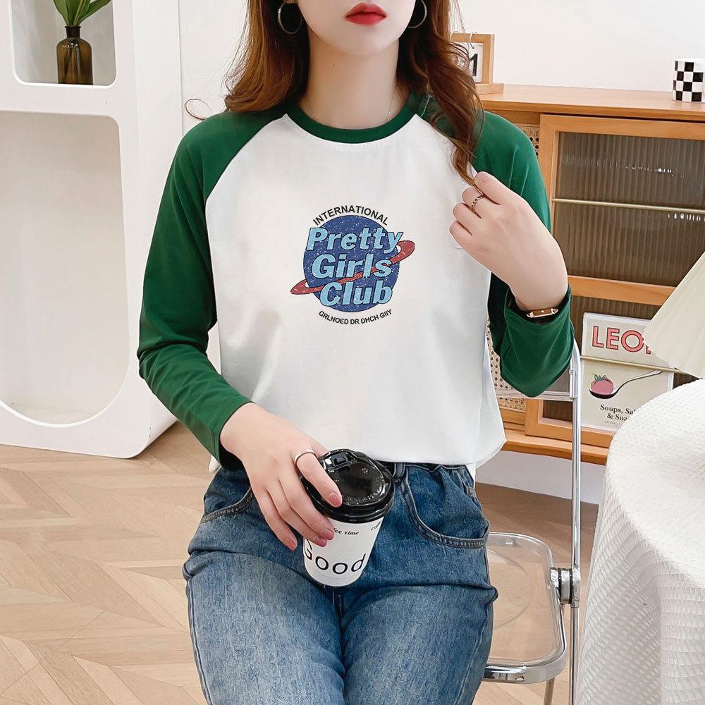 95% Algodón + 5% Spandex Primavera y Otoño Nuevo Suelto Joker Slim Manga Larga Camiseta Chaqueta de Estudiante Femenina Trendy ins