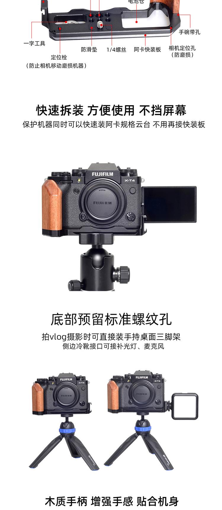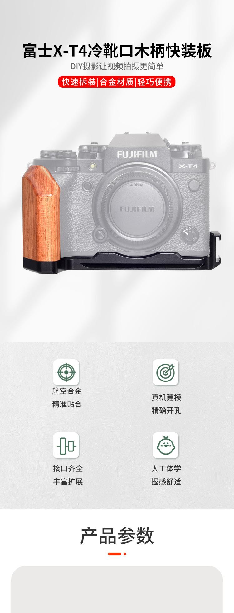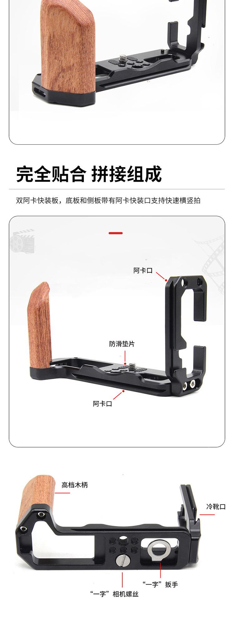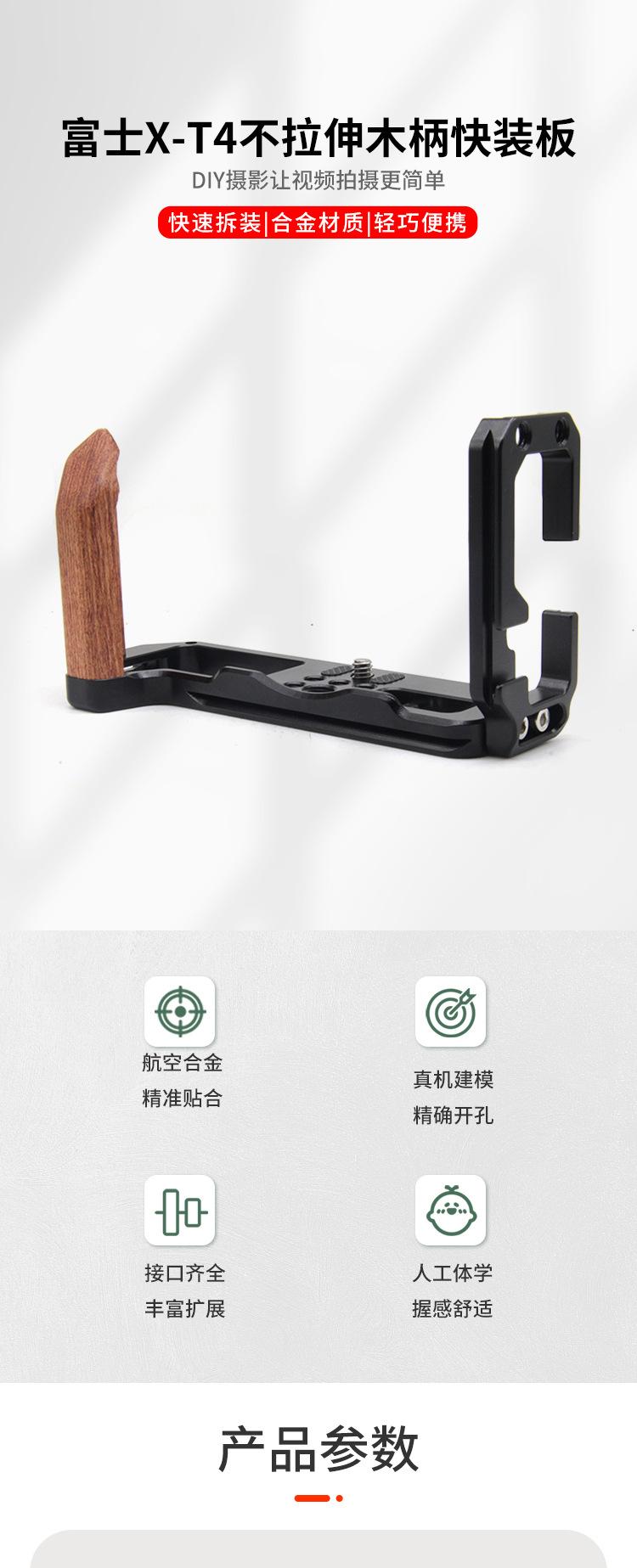 Adecuado para la placa de carga rápida del mango de la cámara Fuji XT4, soporte de expansión de zapata fría en forma de L, accesorios, base del mango de madera XT4
