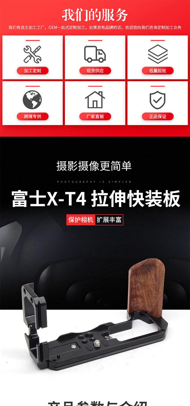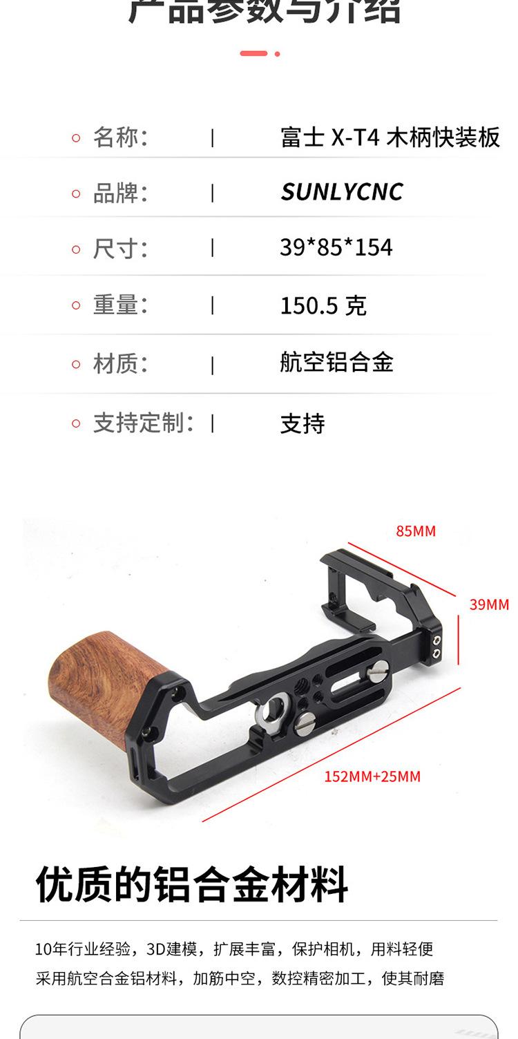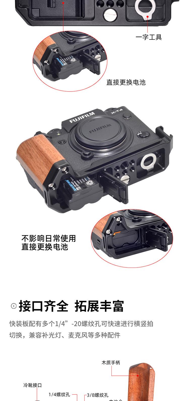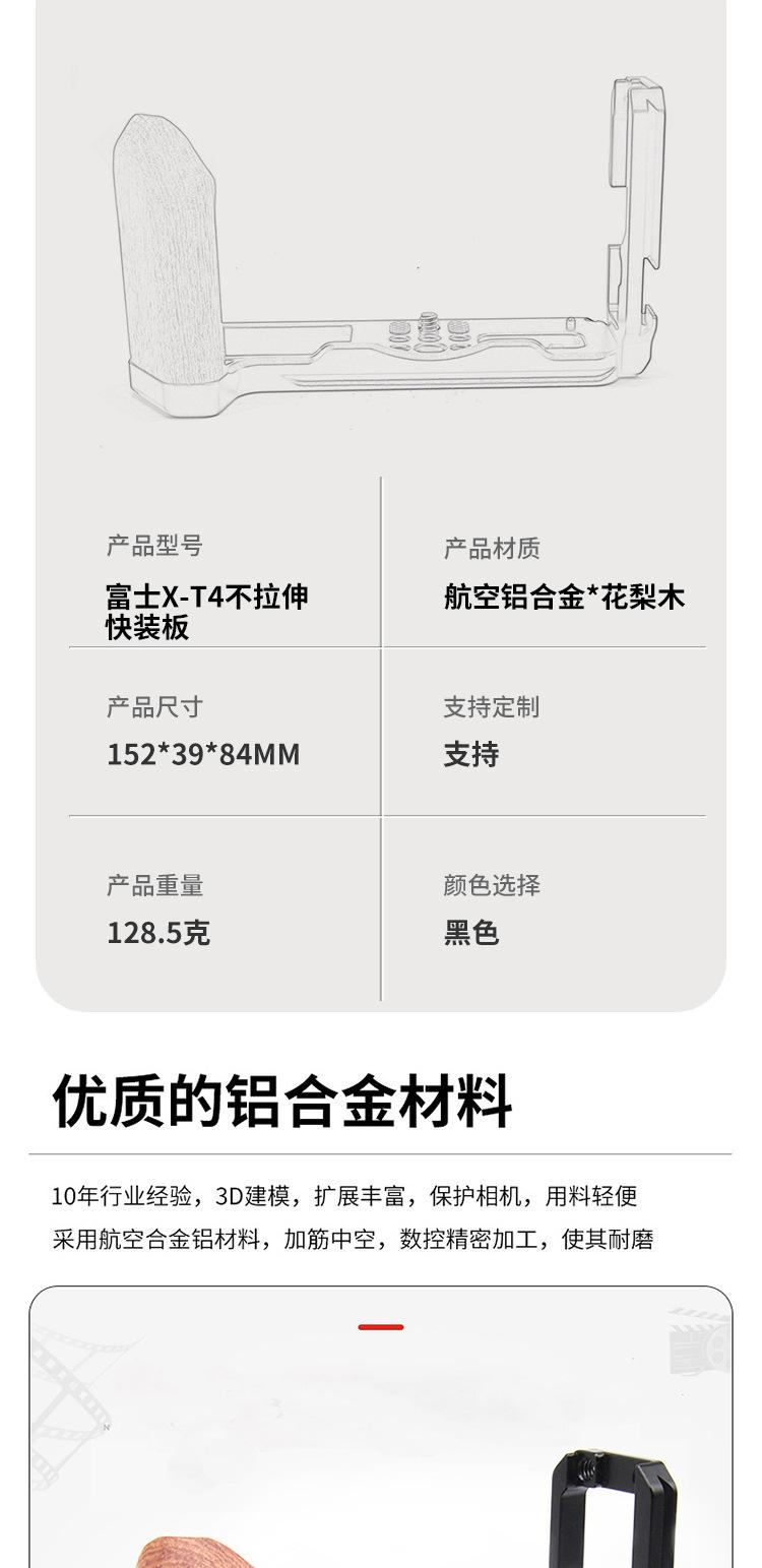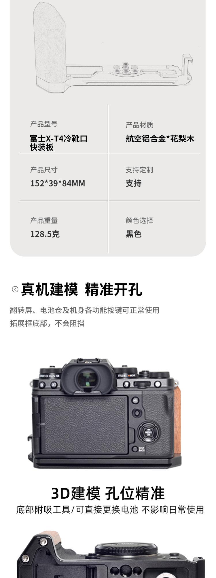 Adecuado para la placa de carga rápida del mango de la cámara Fuji XT4, soporte de expansión de zapata fría en forma de L, accesorios, base del mango de madera XT4