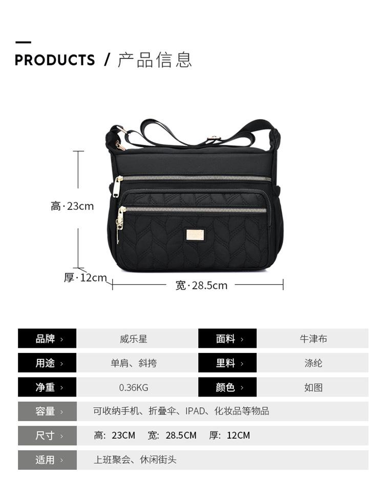 Bolso bandolera informal de tela Oxford impermeable con múltiples bolsillos y gran capacidad para mujer, moderno, duradero y ligero, ideal para mamás de mediana edad.