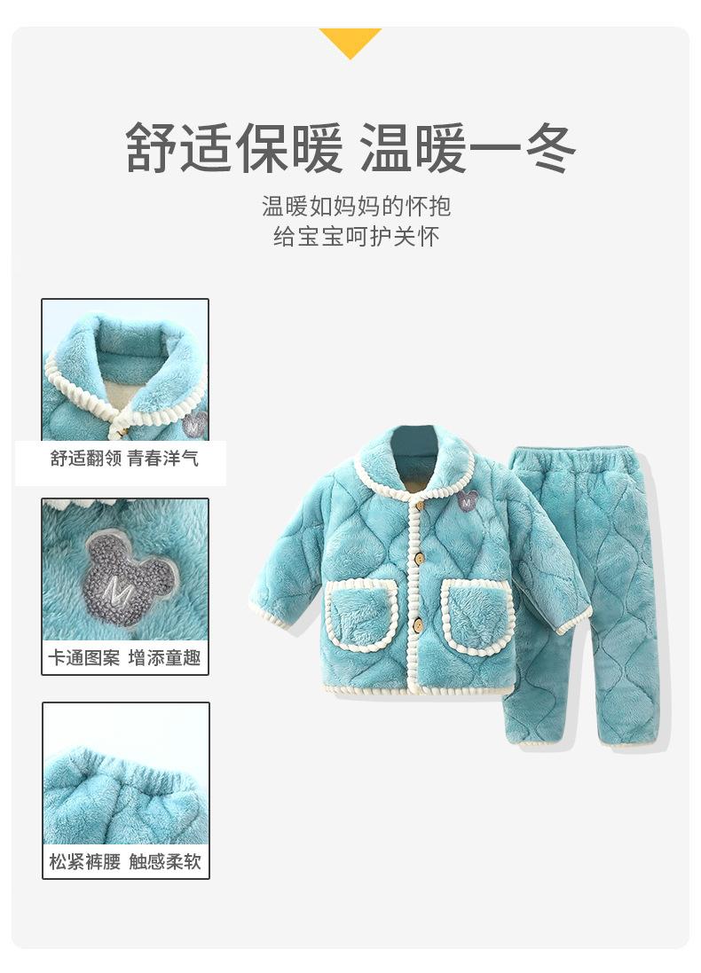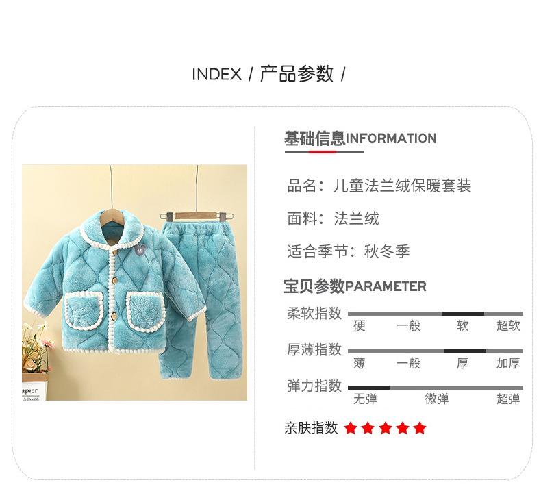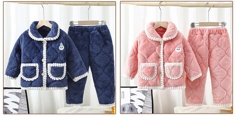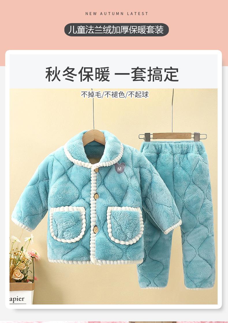 Conjunto de Pijama para Niños Invierno Grueso Niños Medianos y Grandes Franela Tricapa Gruesa Cálida Ropa de Casa para Niños y Niñas Ropa Infantil